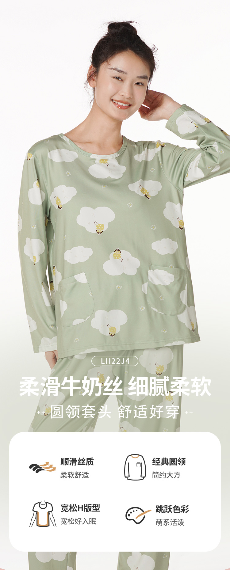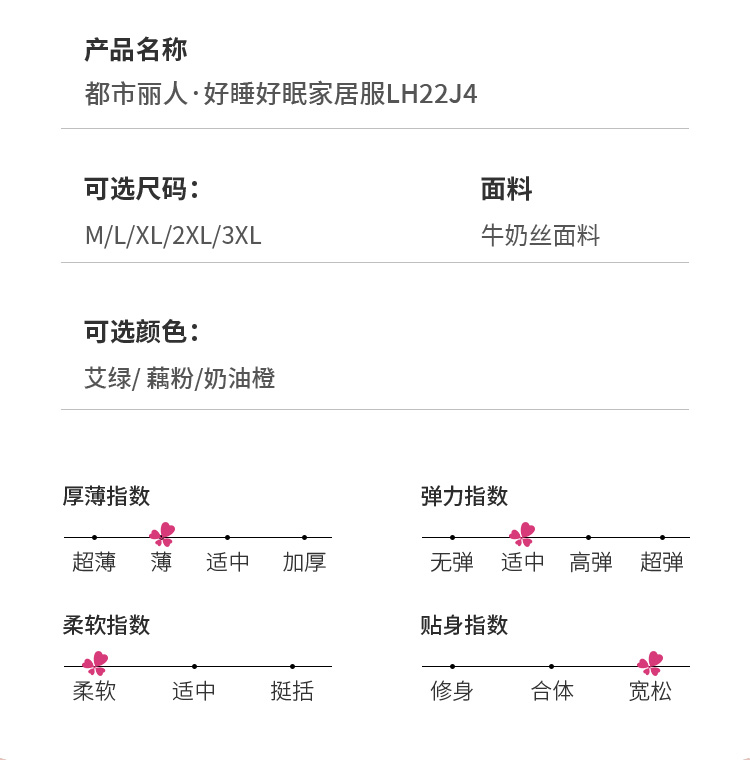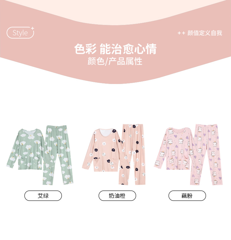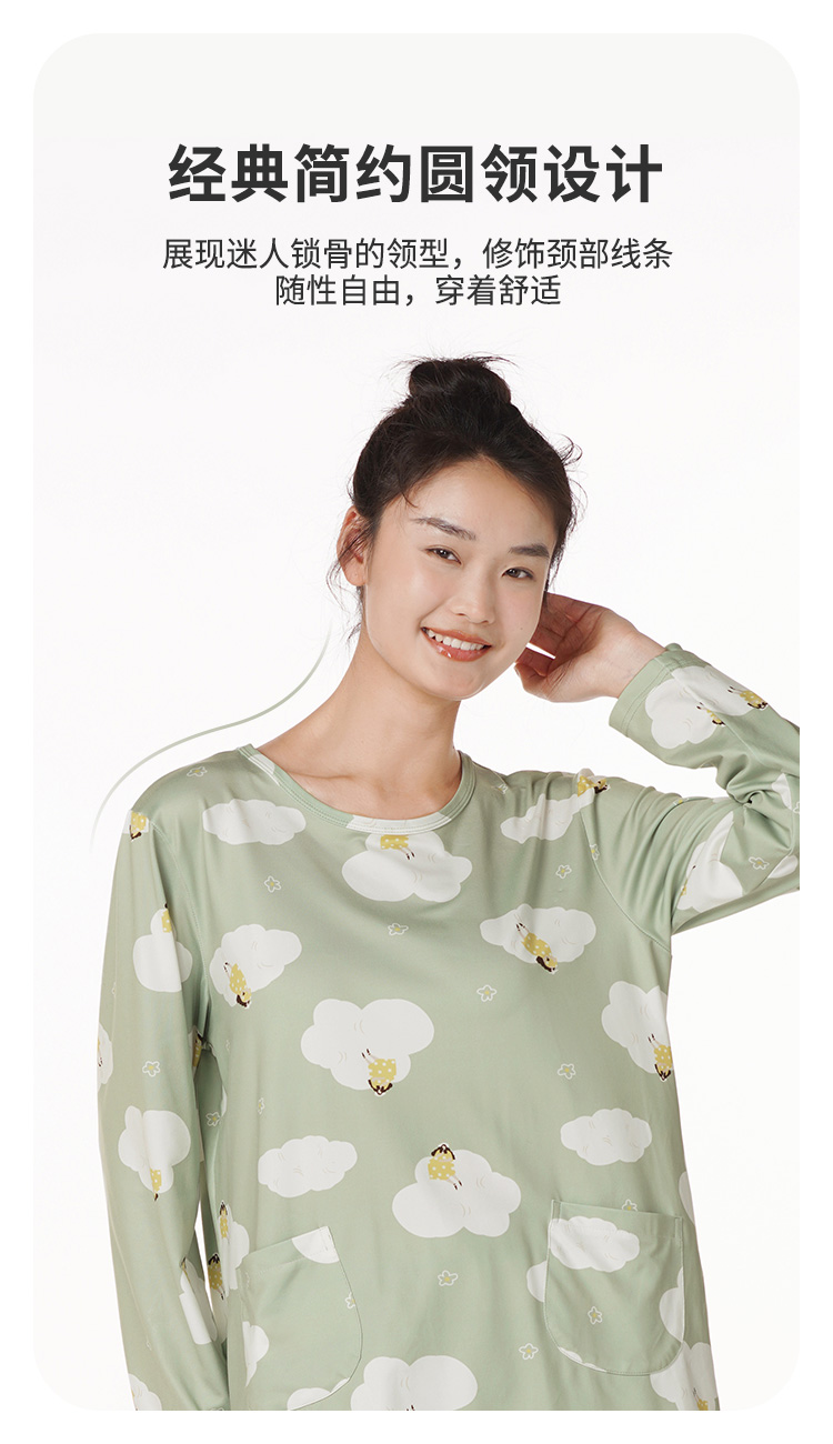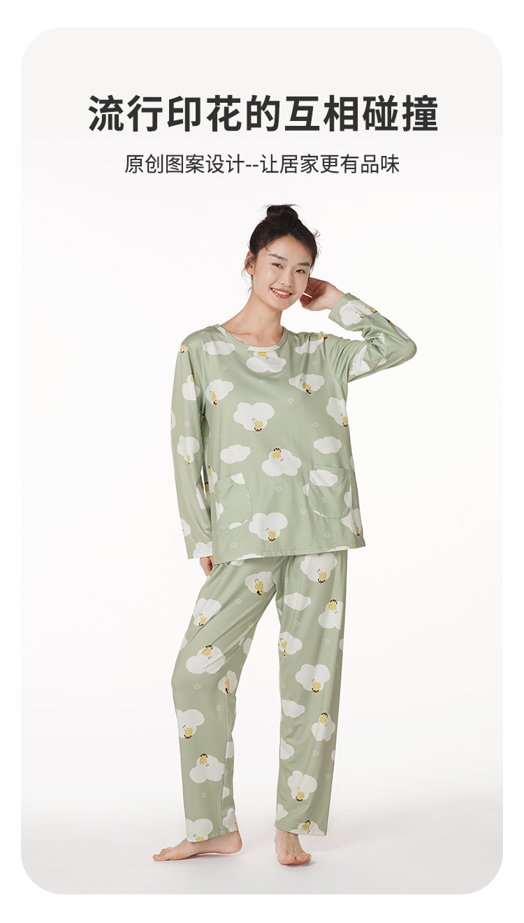 都市丽人好睡好眠女士牛奶丝套装牛奶丝拉架薄家居服长袖睡衣LH22J4