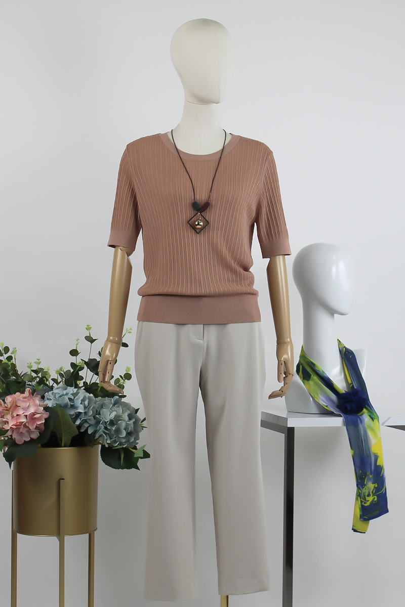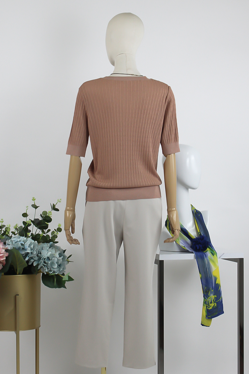 FOCALS女装夏季新款通勤百搭短袖圆领螺纹针织T恤上衣2YBT235P1