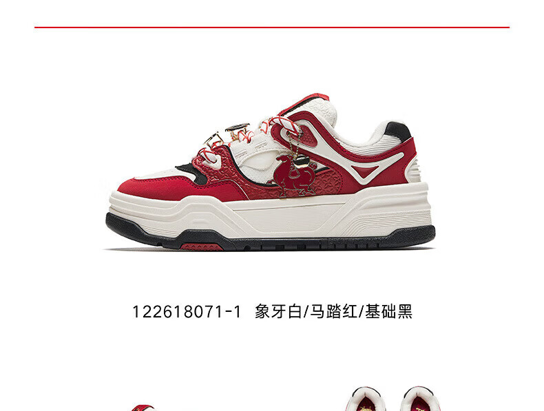 安踏(ANTA)芝士蛋糕丨女板鞋好事发生新年配色百搭红色潮流板鞋象牙白/马踏红/基础黑122618071 -1