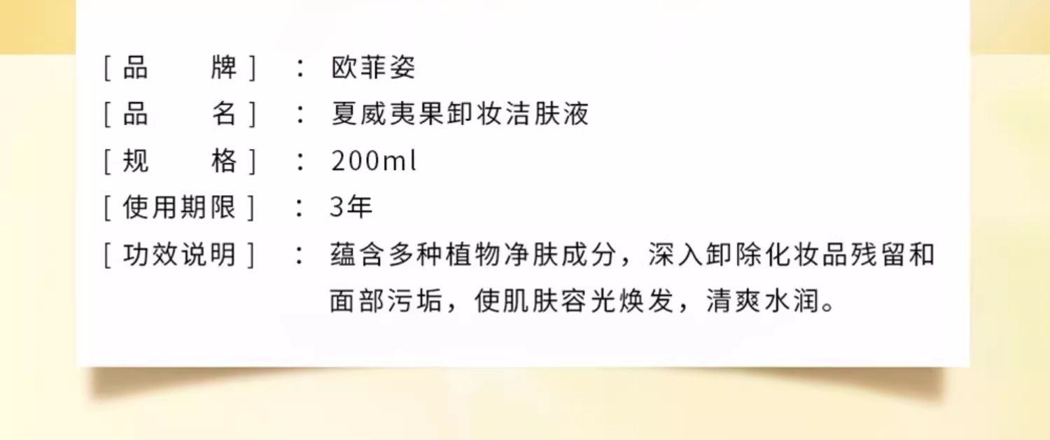 欧菲姿夏威夷果卸妆洁肤液