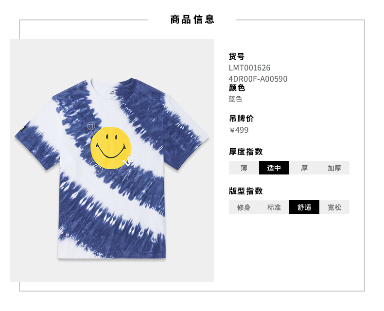 【Smiley®联名】Lee22春夏新品舒适扎染多色男短袖T恤LMT001626