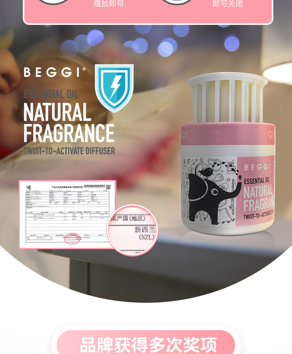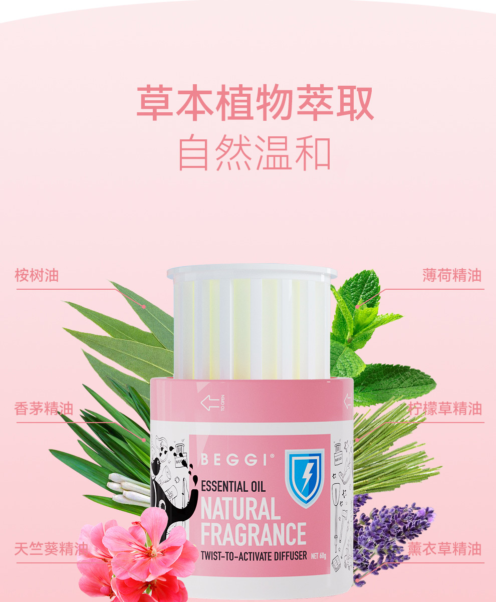 新西兰Beggi鼻精灵 旋转精油香薰 植物萃取自然温和携带便捷 60g/盒