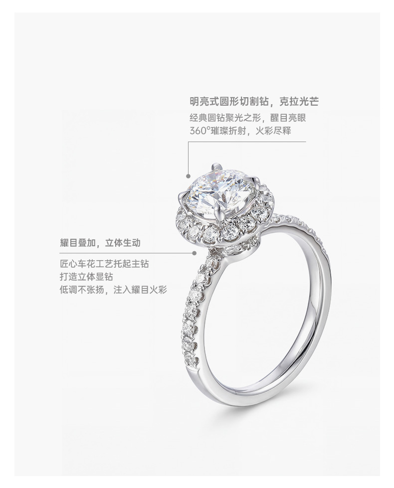 告白·Shining系列 ShiningHouse[培育] 18k金钻石戒指 圆形1克拉钻人工真钻人造钻石K金戒指设计感简约钻石戒指悦己送礼臻选【此商品不支持7天无理由退货退款】