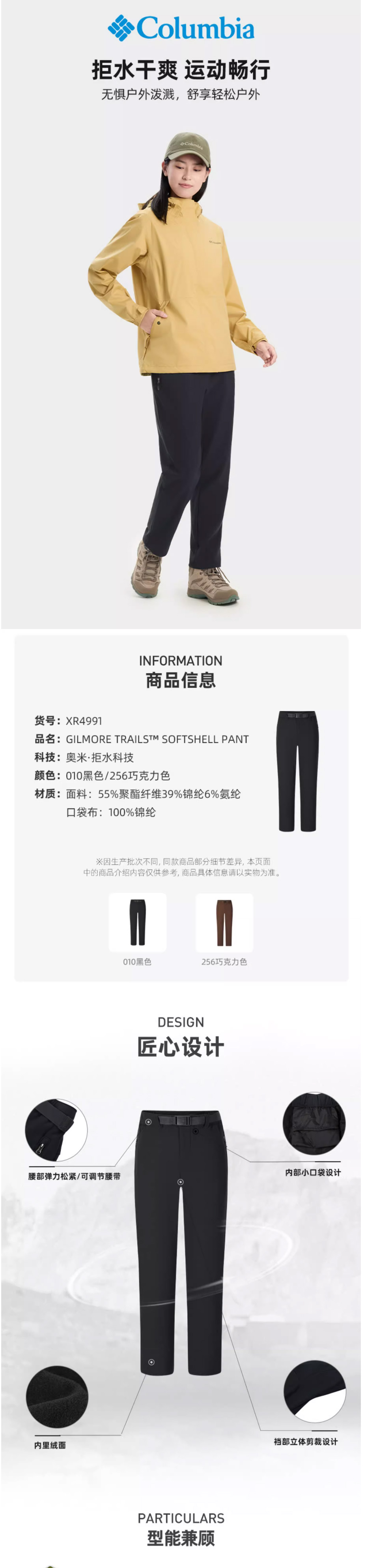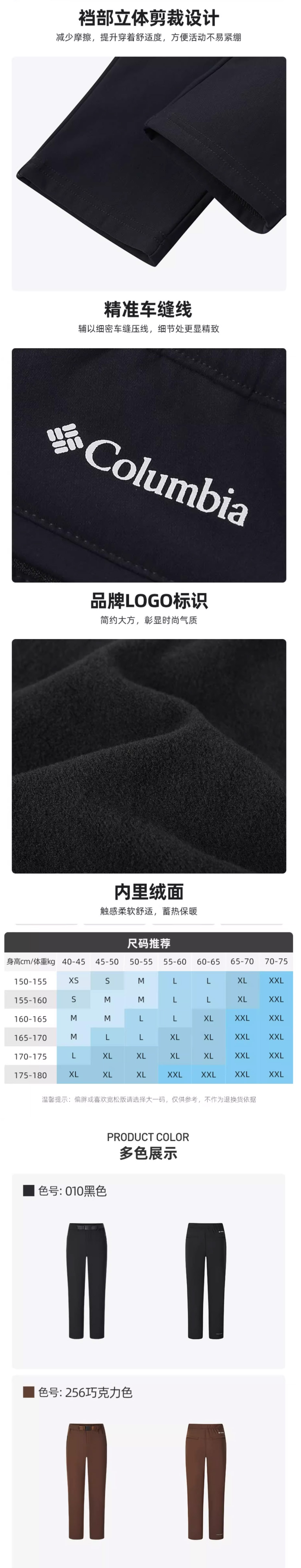 哥伦比亚户外25秋冬新品女子拒水绒面内里保暖长裤XR4991010