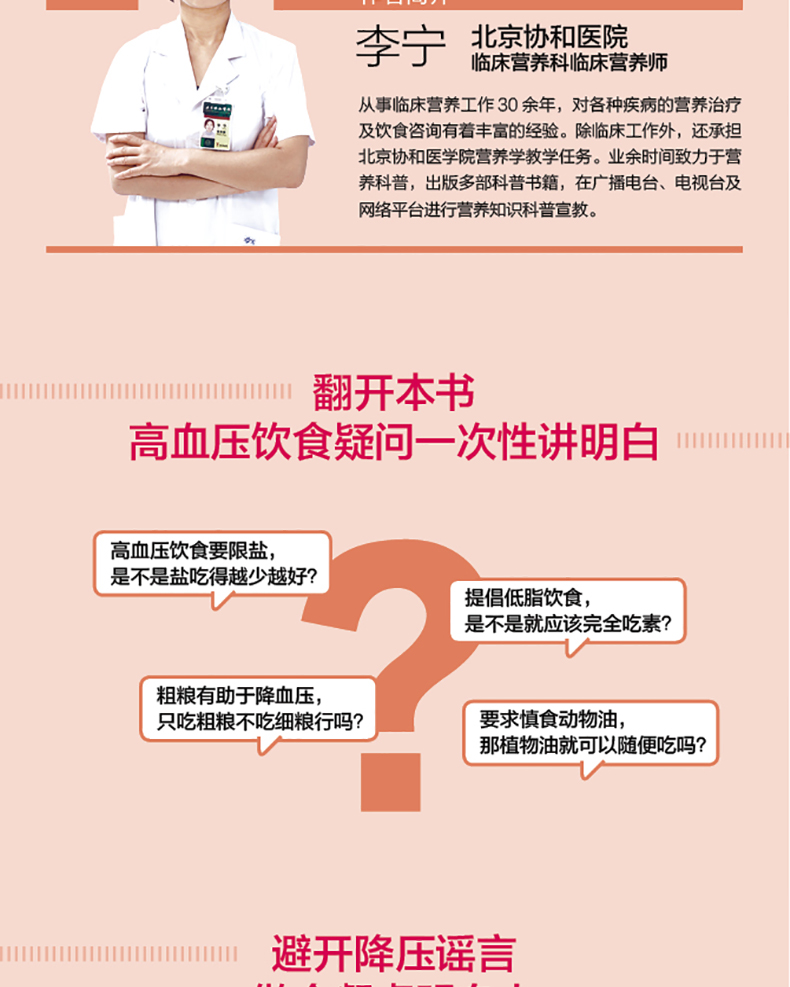北京协和医院临床营养科临床营养师。从事临床营养工作30余年,对各种疾病的营养治疗及饮食咨询均有丰富的经验。除临床工作外,业余时间热心科普,出版了多部科普书籍,经常在广播电台、电视台及网络平台进行营养知识科普宣教。