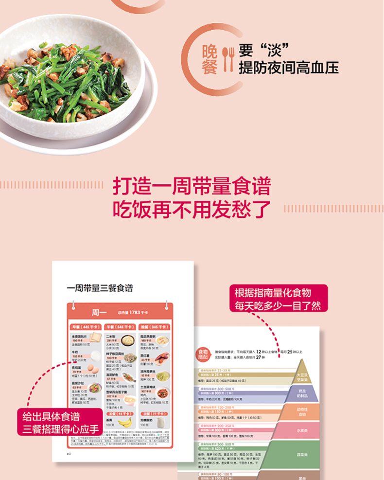 不仅是一餐,更有一日三餐、一周七天的具体膳食搭配模板,跟着做,放心吃。
