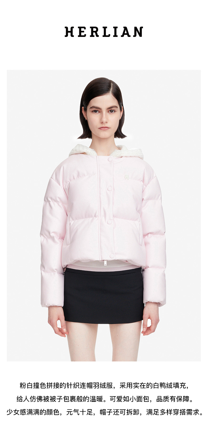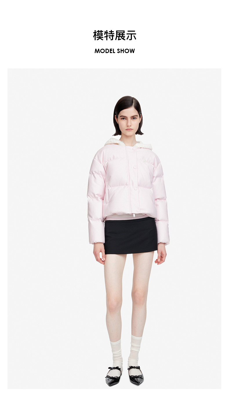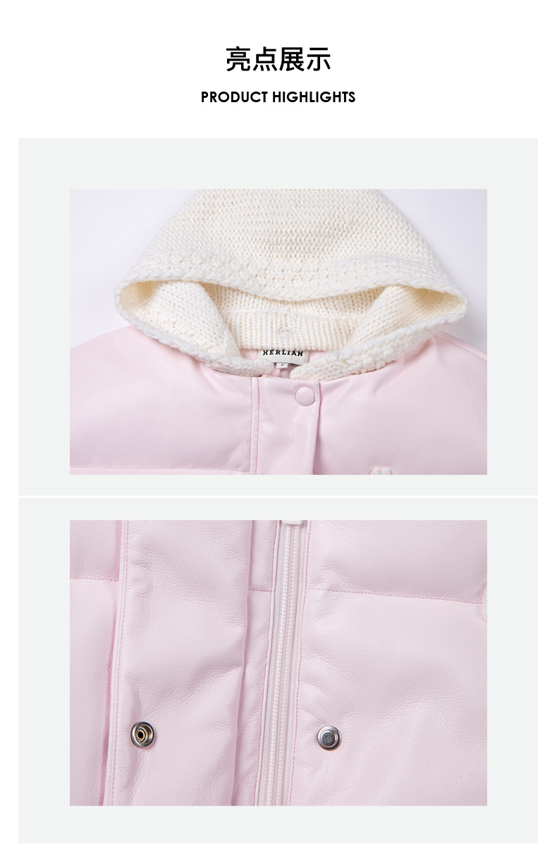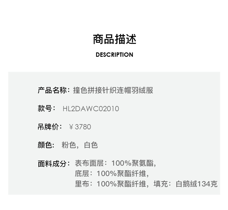 HL2DAWC02010 撞色拼接针织连帽羽绒服