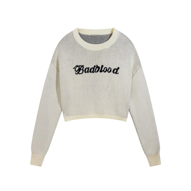 秋冬字母刺绣短款毛衣女款休闲运动辣妹上衣
