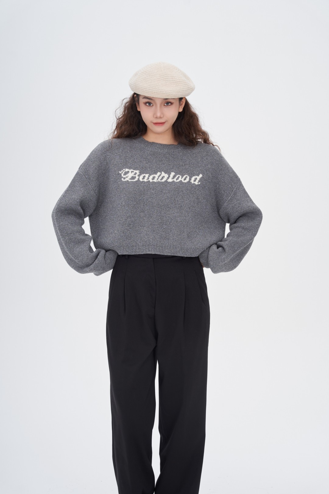 秋冬字母刺绣短款毛衣女款休闲运动辣妹上衣 商品图4
