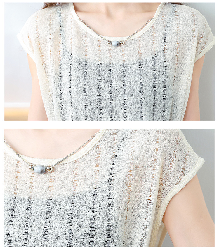 夏季针织绣花棉洋气雪纺边修身短款时尚小衫LM06562