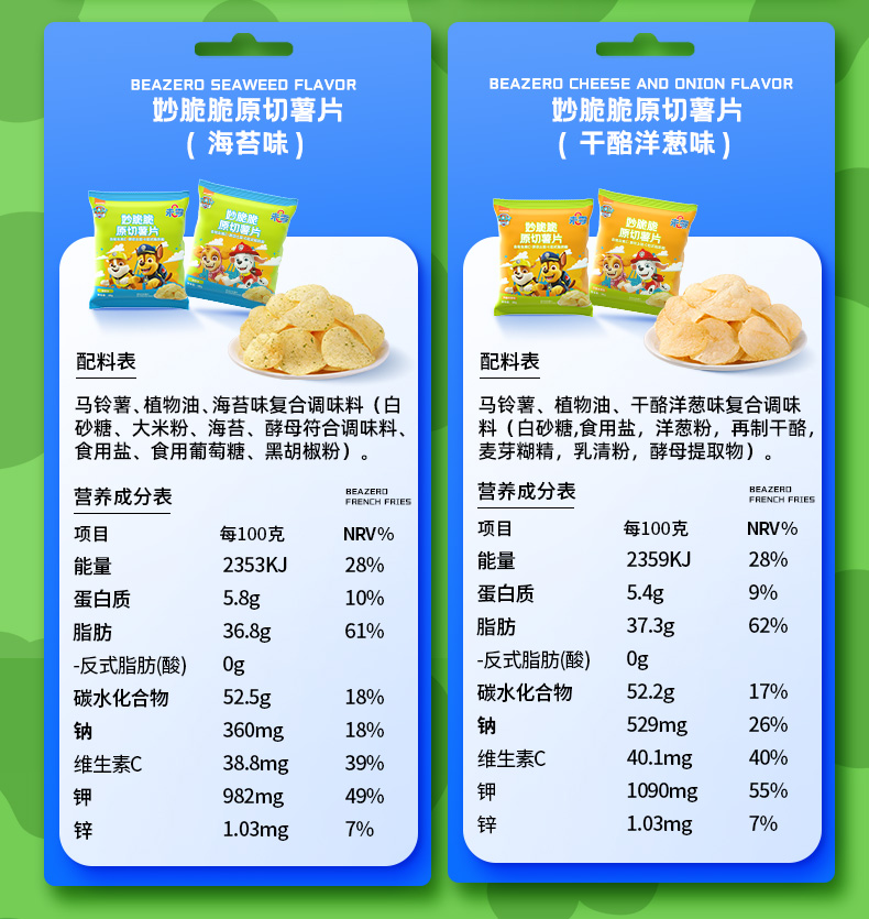 未零妙脆脆原切薯片波浪薯片 18g*20 包 汪汪队儿童营养零食