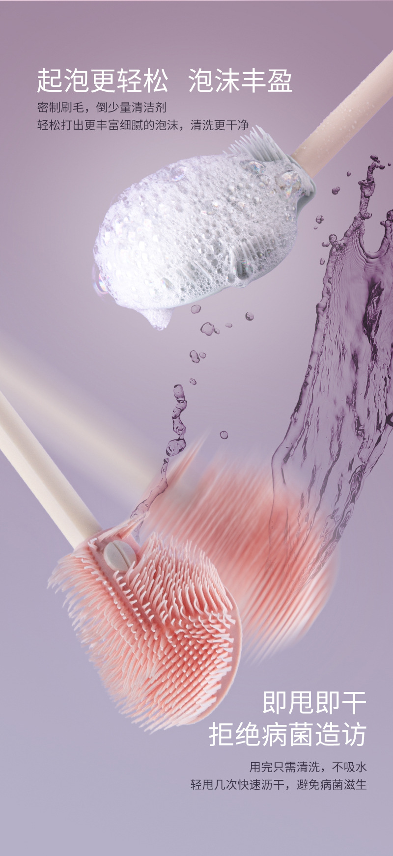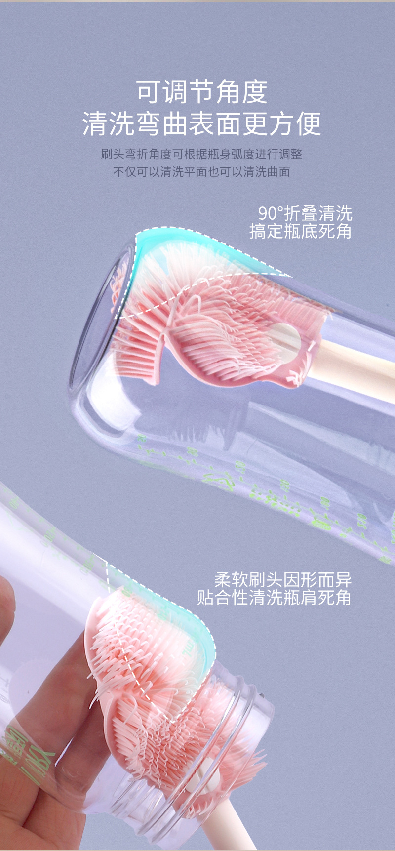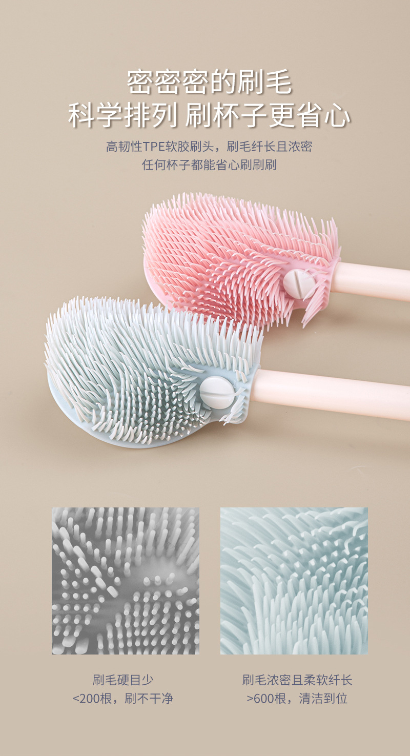 儿童瓶刷三件套带沥水架便携硅胶长柄可折叠刷头洗杯涮子
