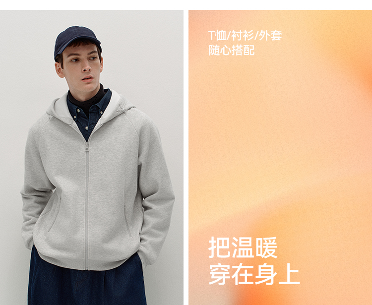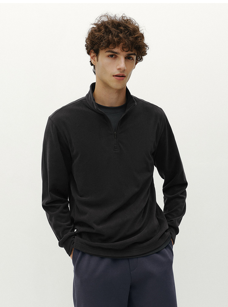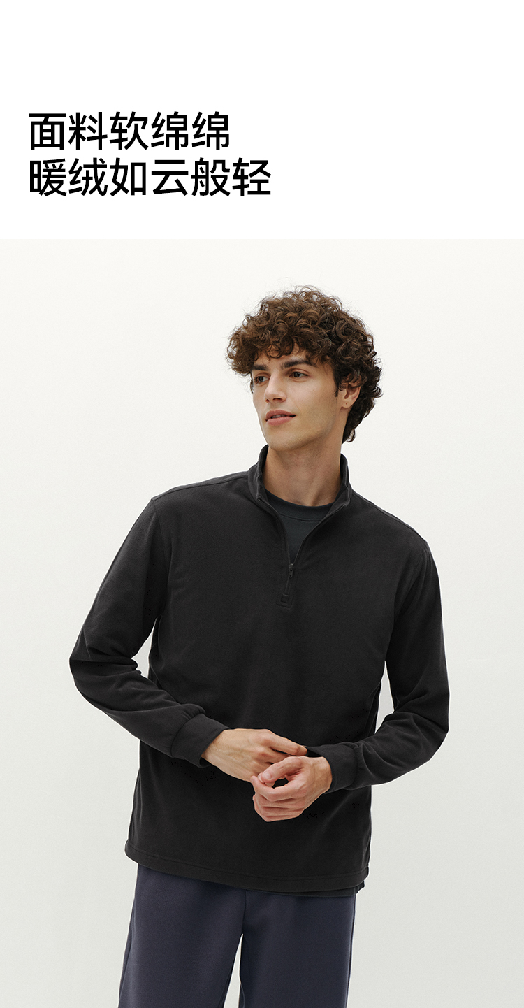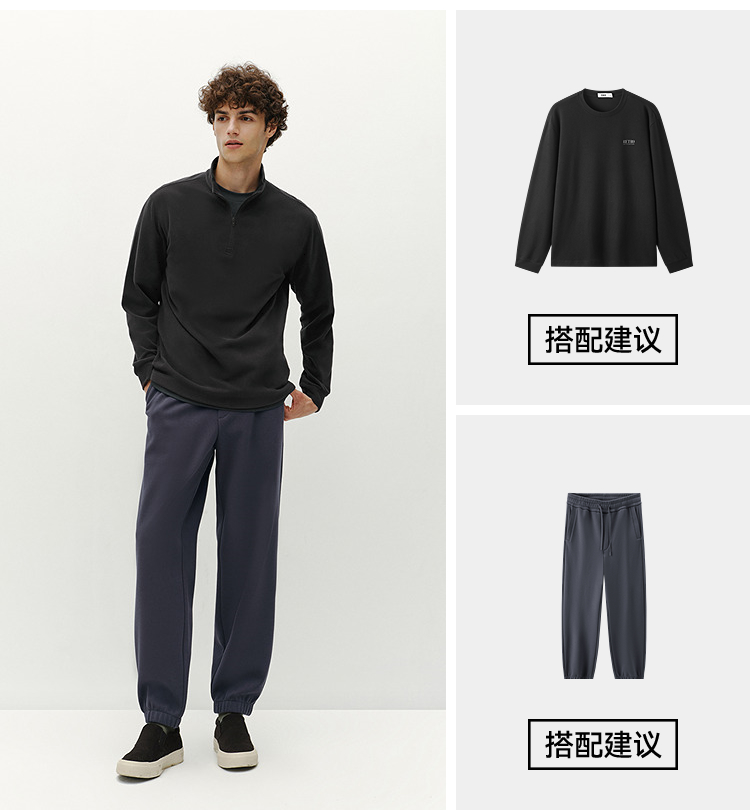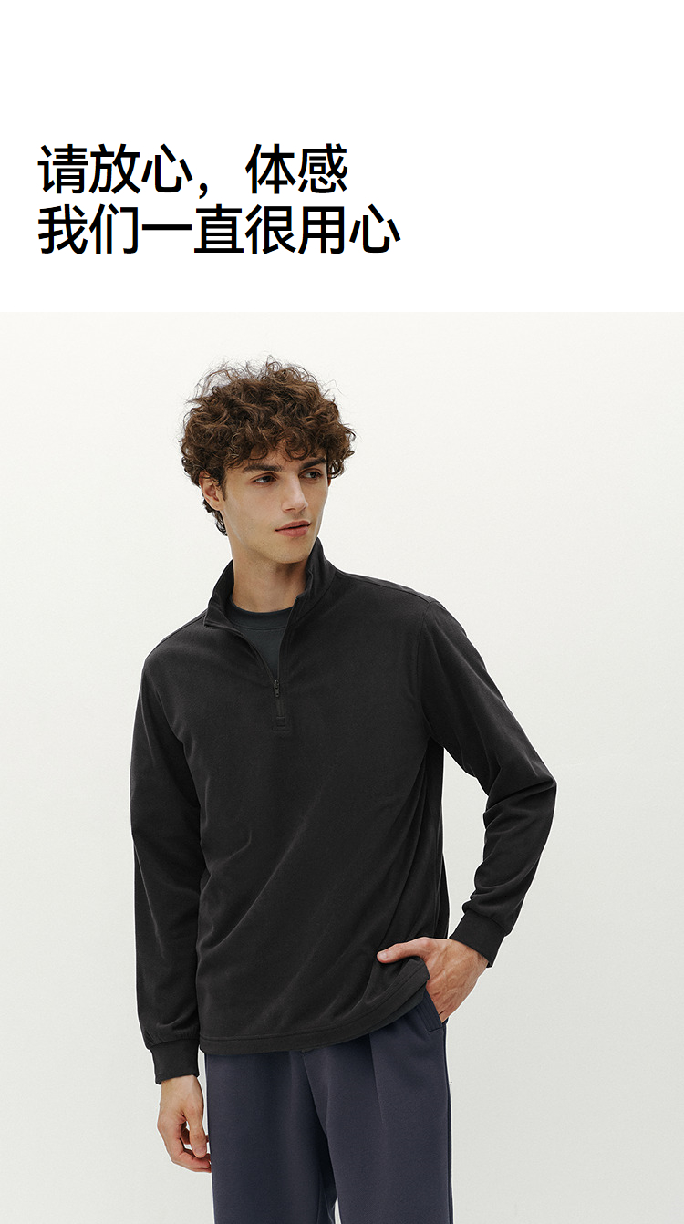 商场同款|森马长袖T恤男冬发热摇粒绒内胆2025新款半开襟立领上衣
