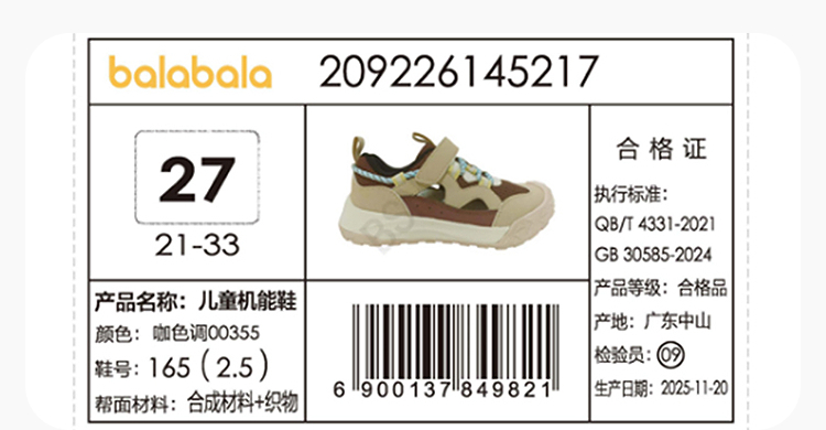 【balaOne】巴拉巴拉儿童稳步鞋男女童凉鞋2026夏新撞色风机能鞋