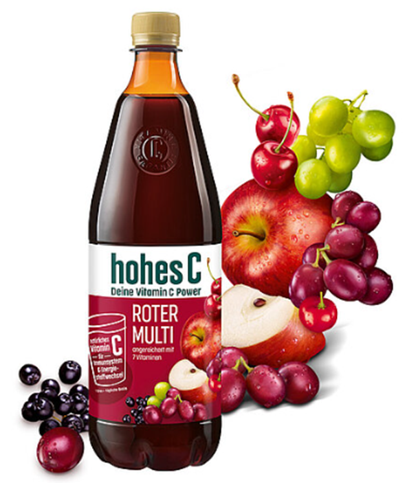 配料:多种果汁(苹果,葡萄,针叶樱桃,野樱莓,酸樱桃,柠檬)黑胡萝卜汁(4%),天然香料,葡萄籽提取物(0.01%),烟酸,维生素E,泛酸钙,维生素B6,维生素B2,生物素、维生素B12