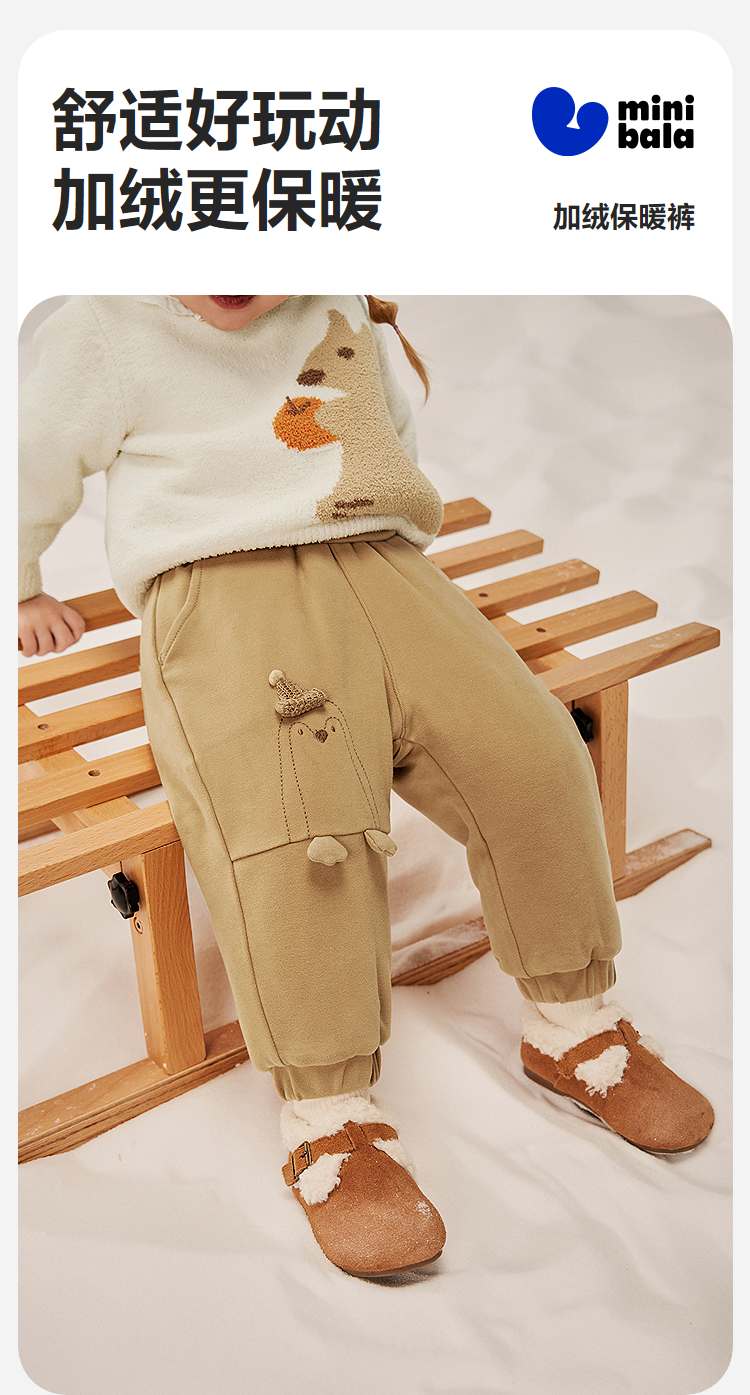 迷你巴拉巴拉男女童宝宝裤子2025冬新品保暖内里加绒柔软长裤