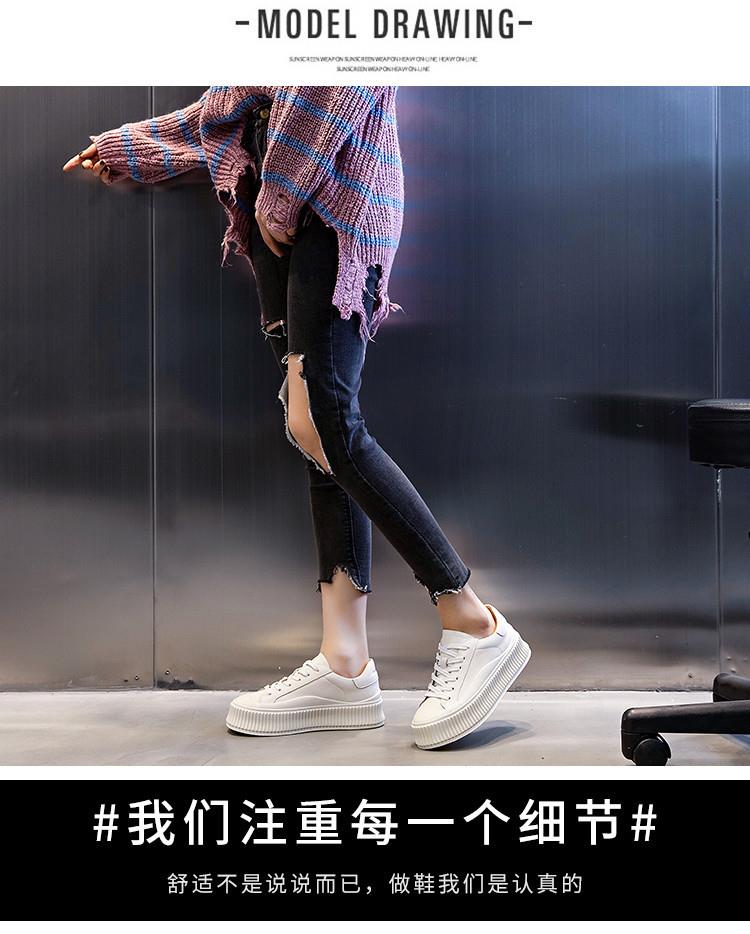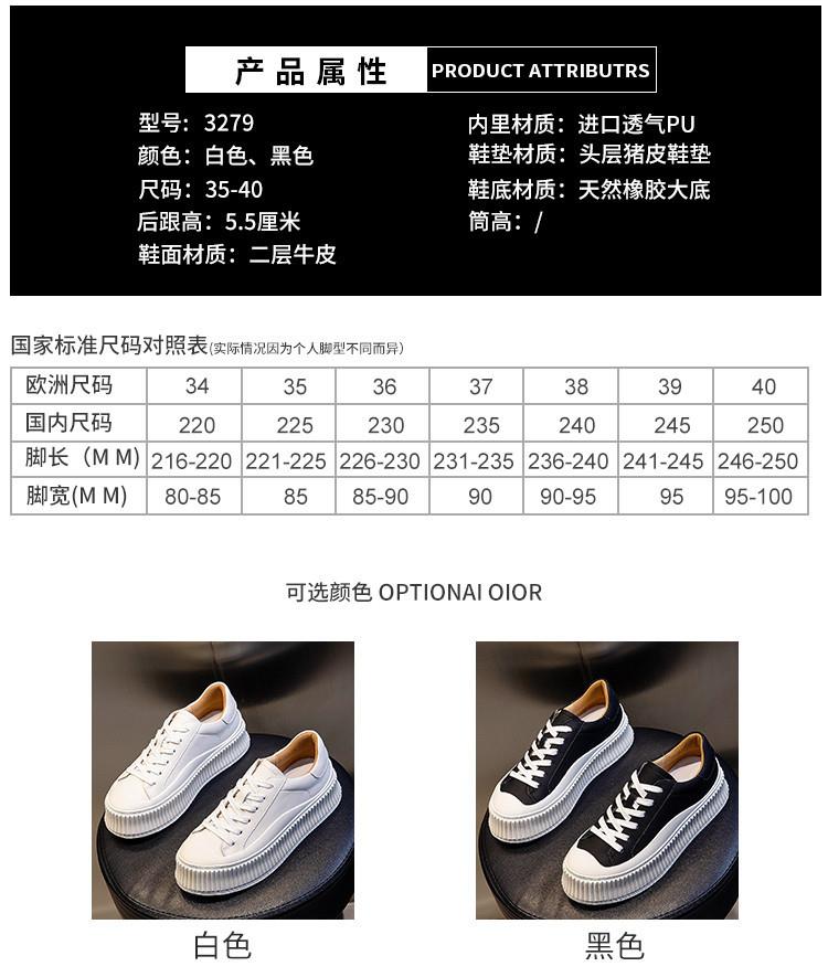 小白鞋女真皮春季2024新款女士休闲饼干鞋厚底单鞋女增高平底女鞋 商品图6