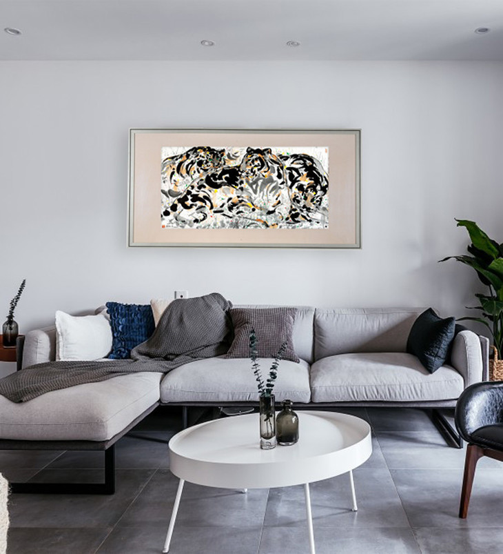 吴冠中综合版画《老虎之一》 装裱尺寸:130cm×78cm