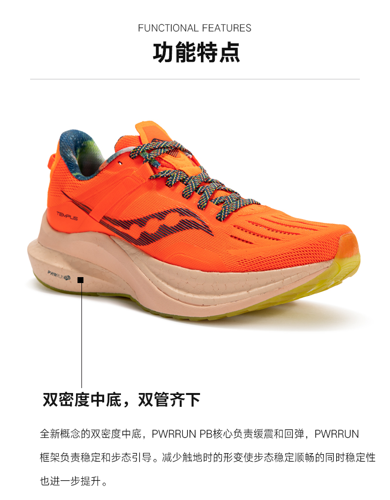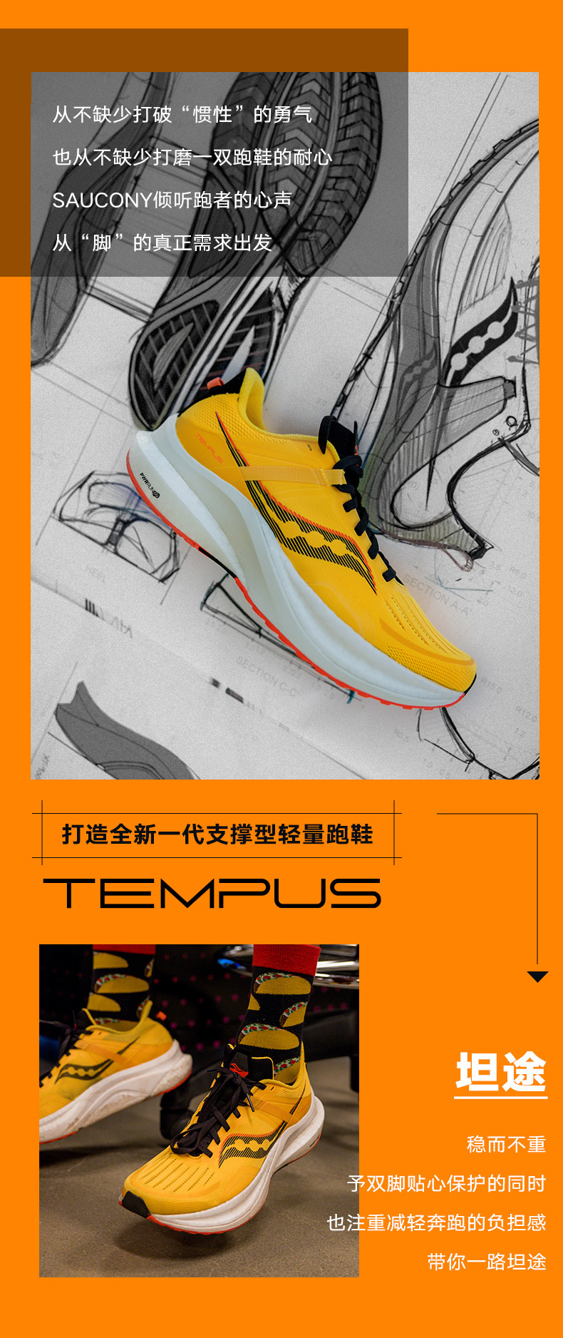 新款Saucony索康尼TEMPUS坦途男鞋冬季跑步鞋稳定支撑轻量马拉松