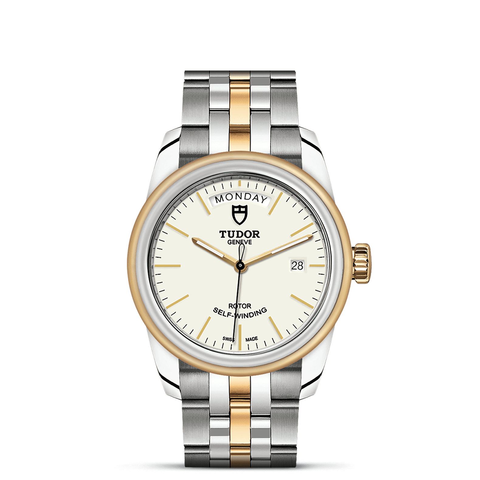 旋入式上链錶冠,饰以帝舵表标志;精钢覆有0.1毫米18K黄金薄层