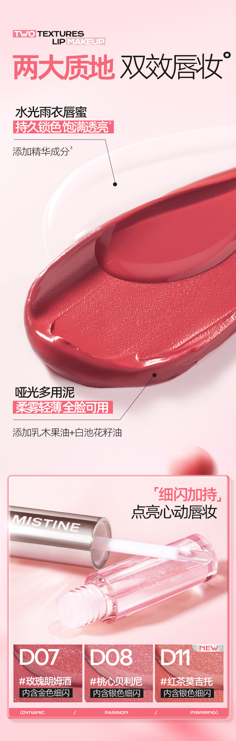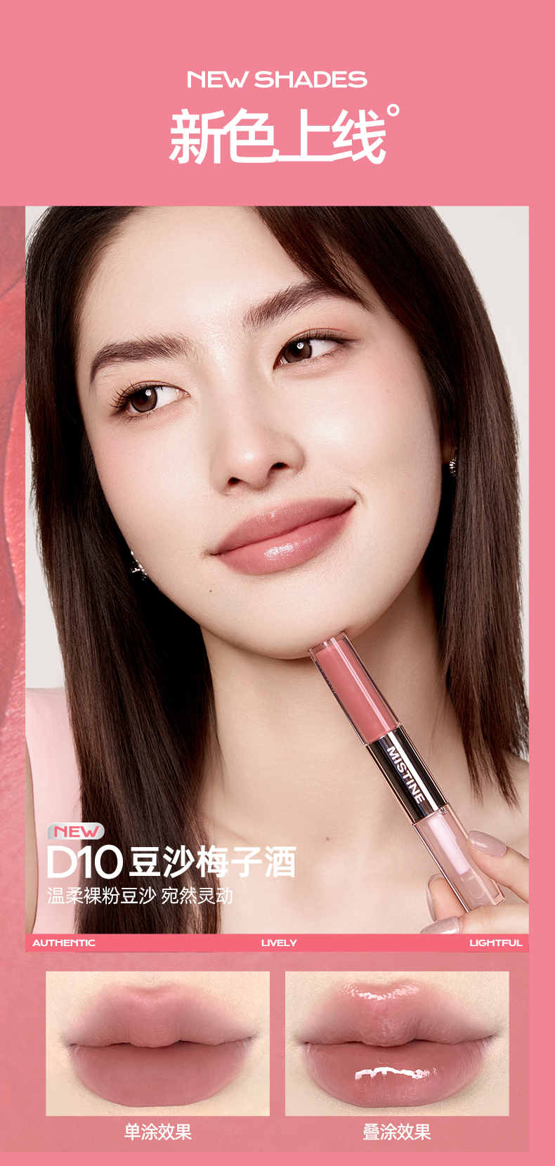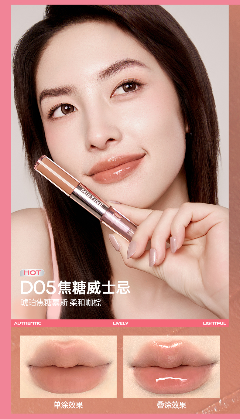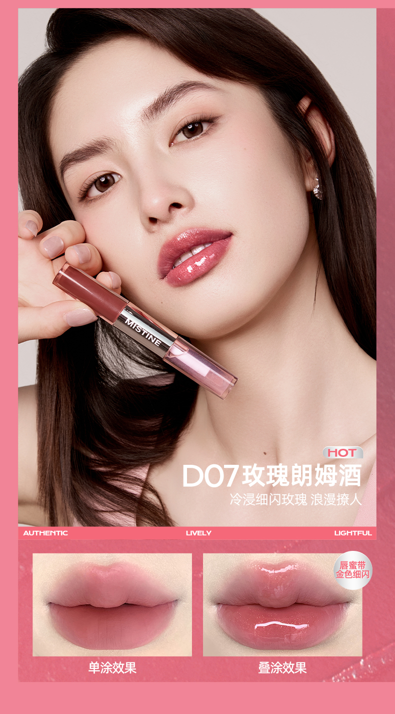 【品名】Mistine蜜丝婷双头唇釉镜面水光唇蜜不沾杯唇油唇泥口红