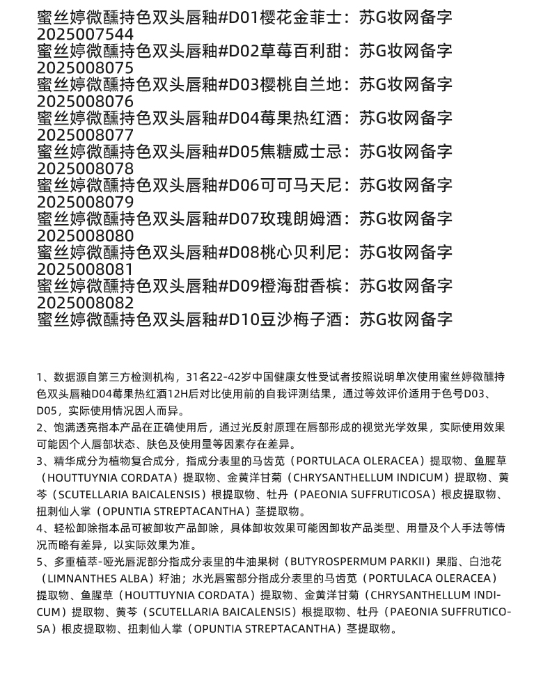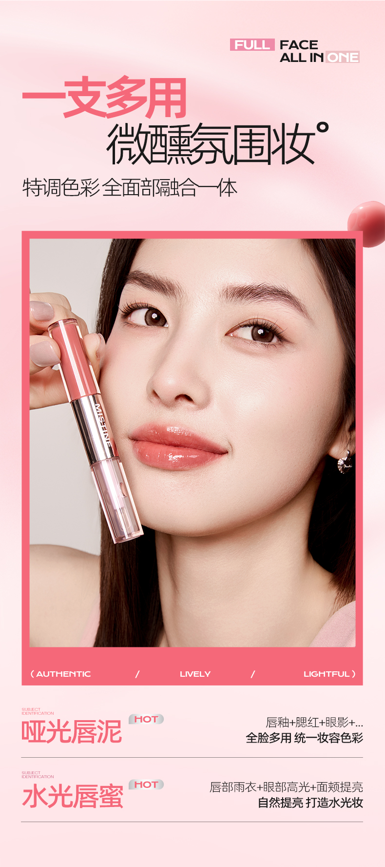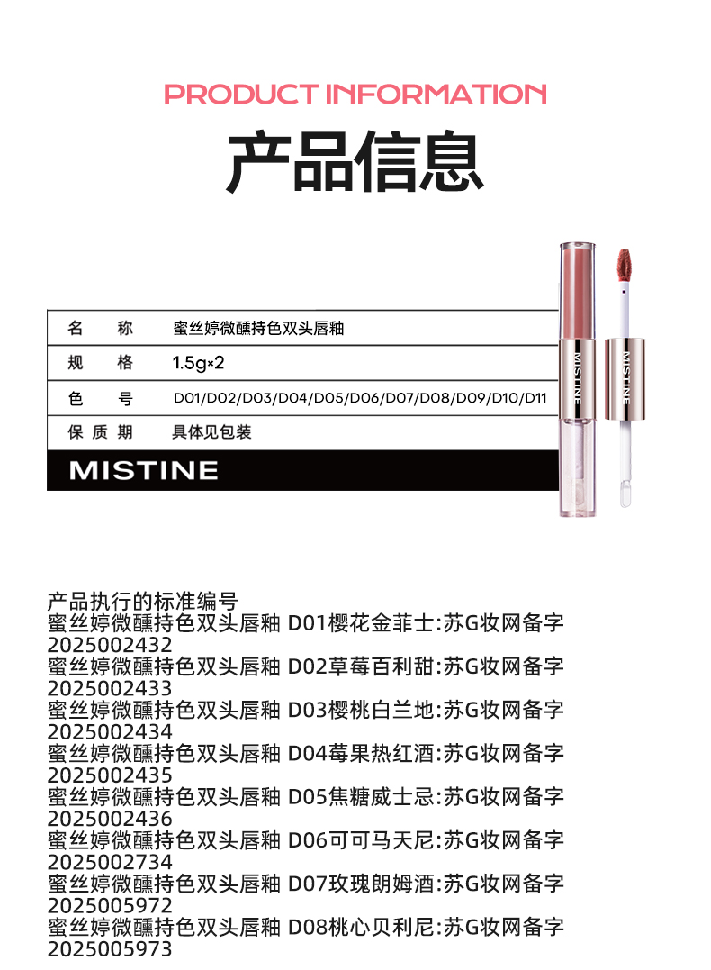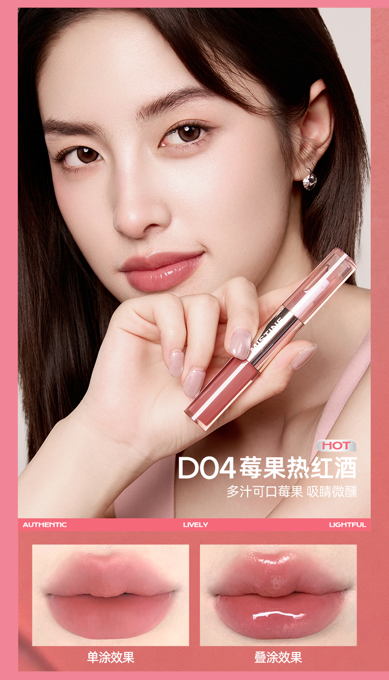 【品名】Mistine蜜丝婷双头唇釉镜面水光唇蜜不沾杯唇油唇泥口红