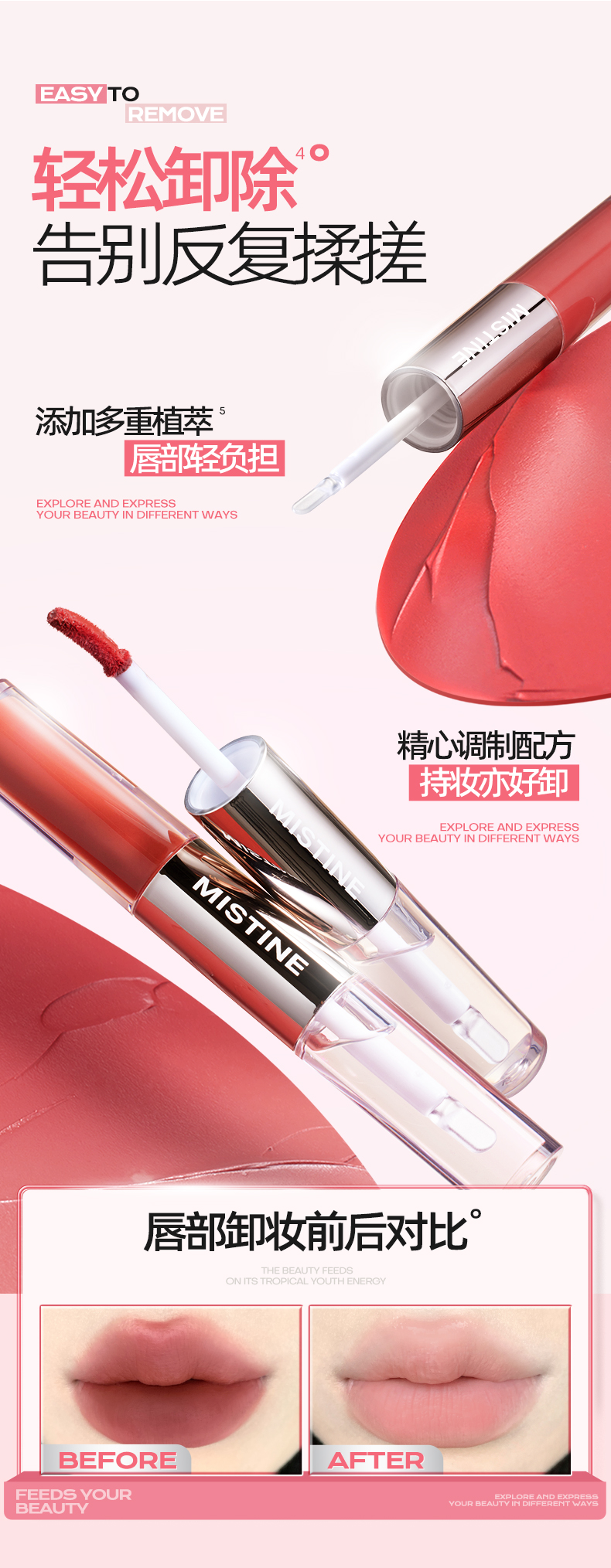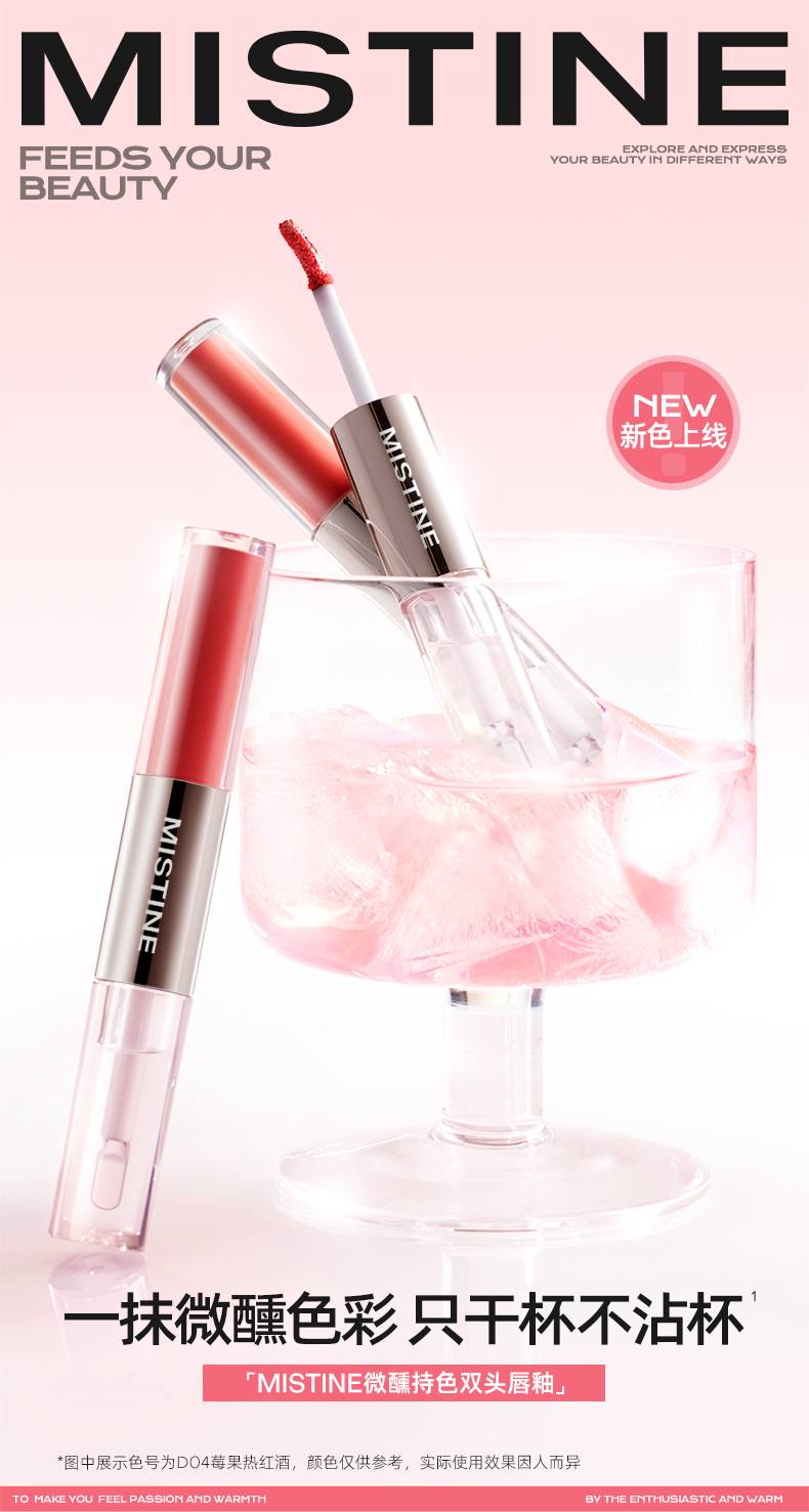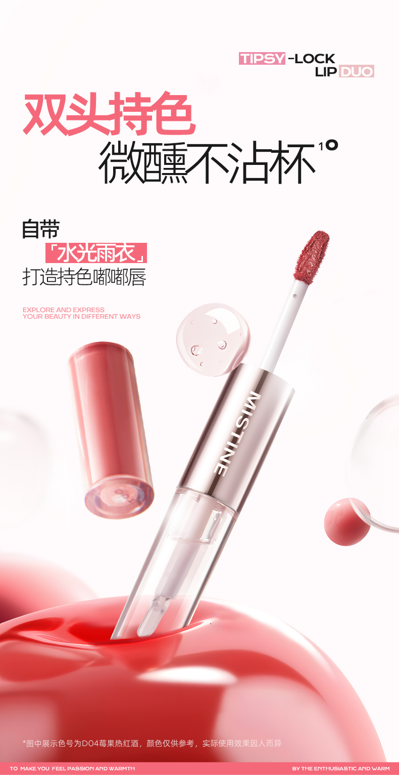 【NEW】Mistine蜜丝婷双头唇釉镜面水光唇蜜不沾杯唇油唇泥口红,打造持久不沾杯的完美妆效。