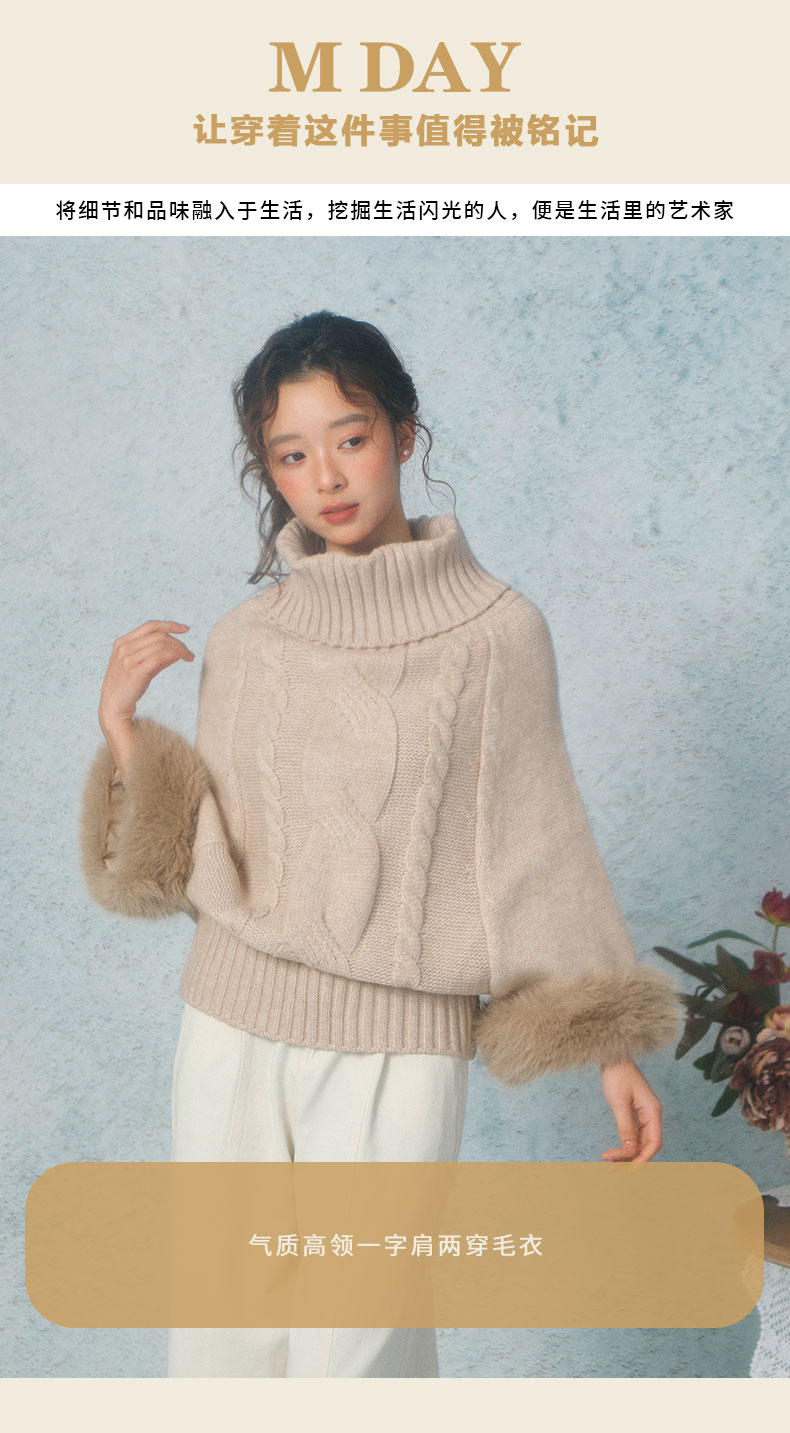 气质高领一字肩两穿毛衣-纪念日百货门店同款169293849