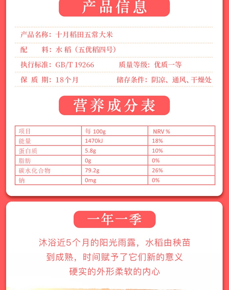 十月稻田磨米世家五常稻花香米2.5kg