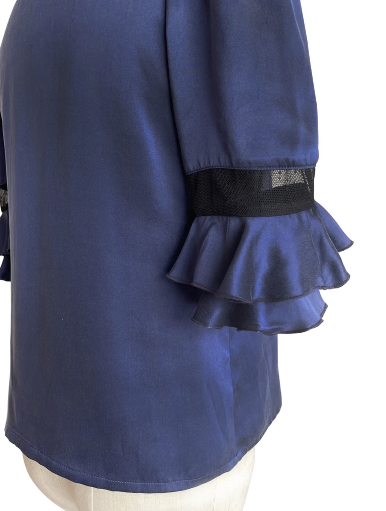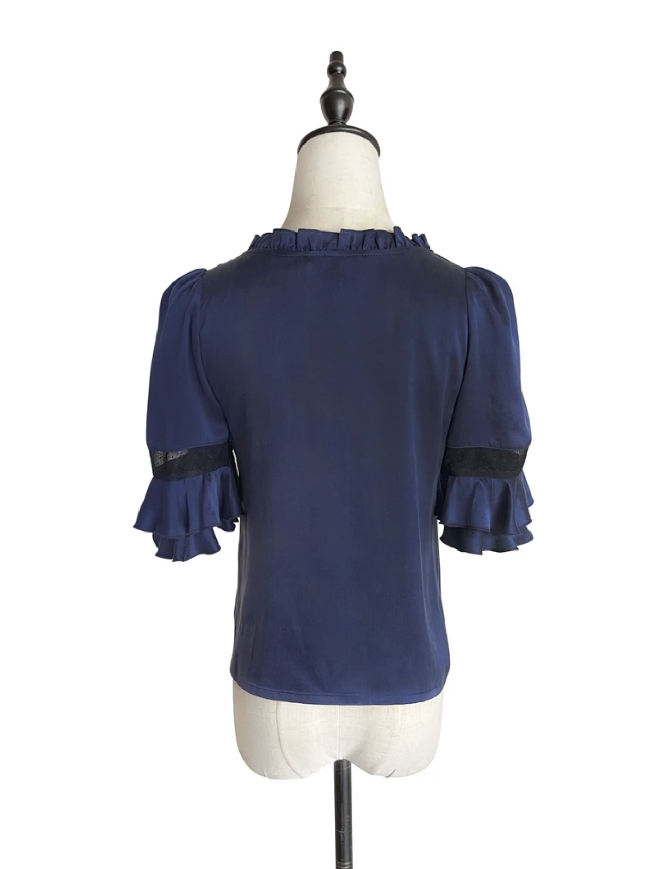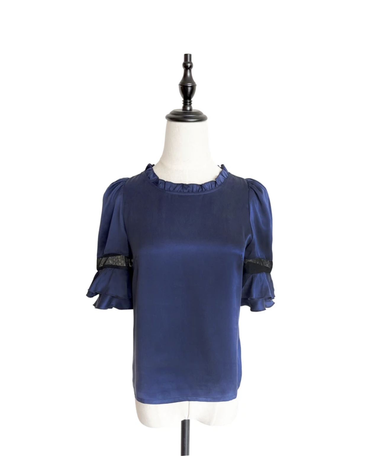 TYNVIE 拼接蕾丝荷叶边短袖上衣