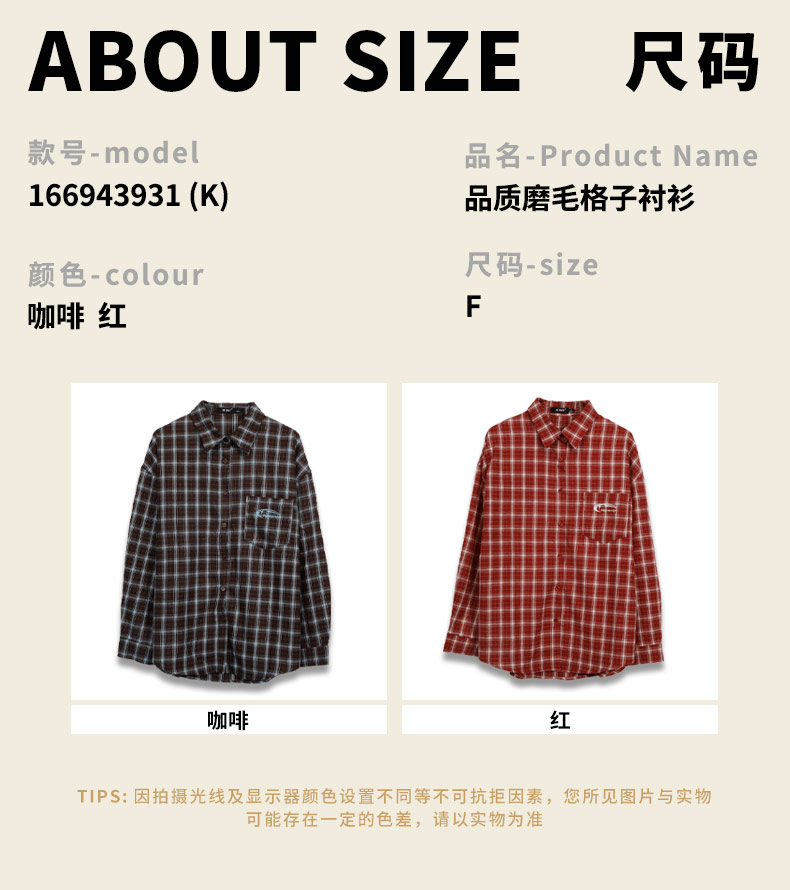 品质磨毛格子衬衫长袖衬衫纪念日百货门店同款166943931
