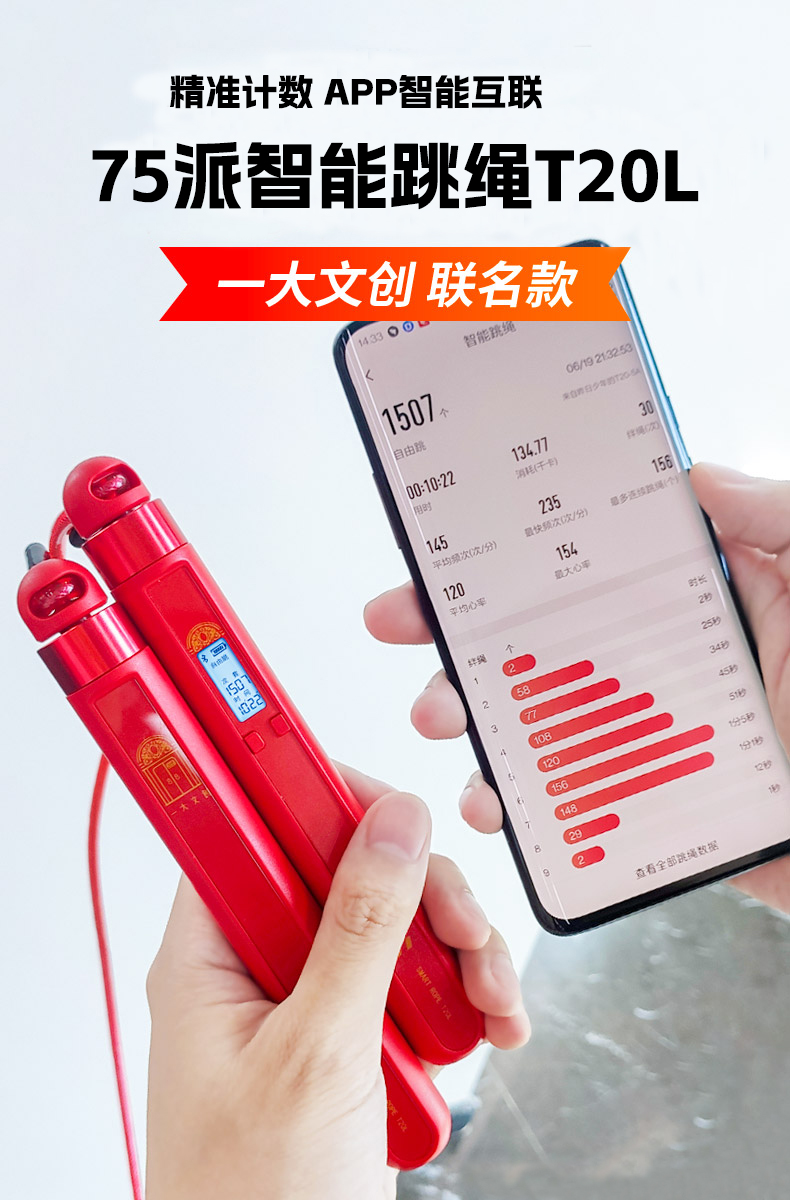 75派T20L一大红色文创联名款健身运动蓝牙智能跳绳计数礼品
