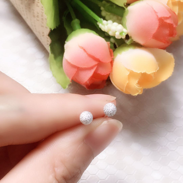 香港正生纯银S925时尚简单光珠磨砂耳钉6m个性百搭款防过敏 送朋友闺蜜JPY带授权招加盟代理