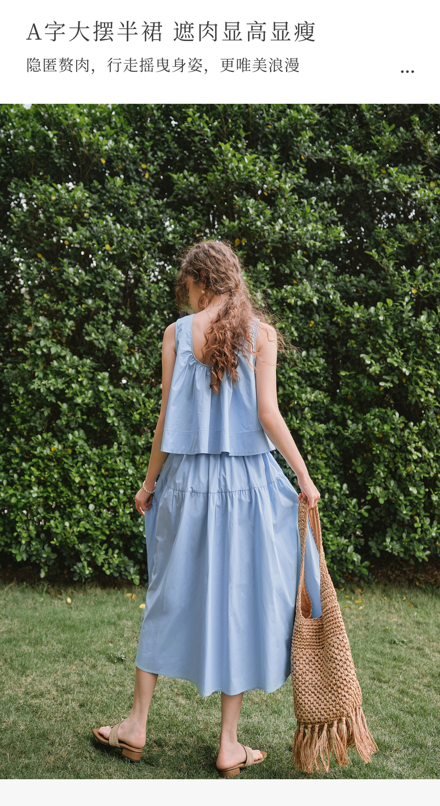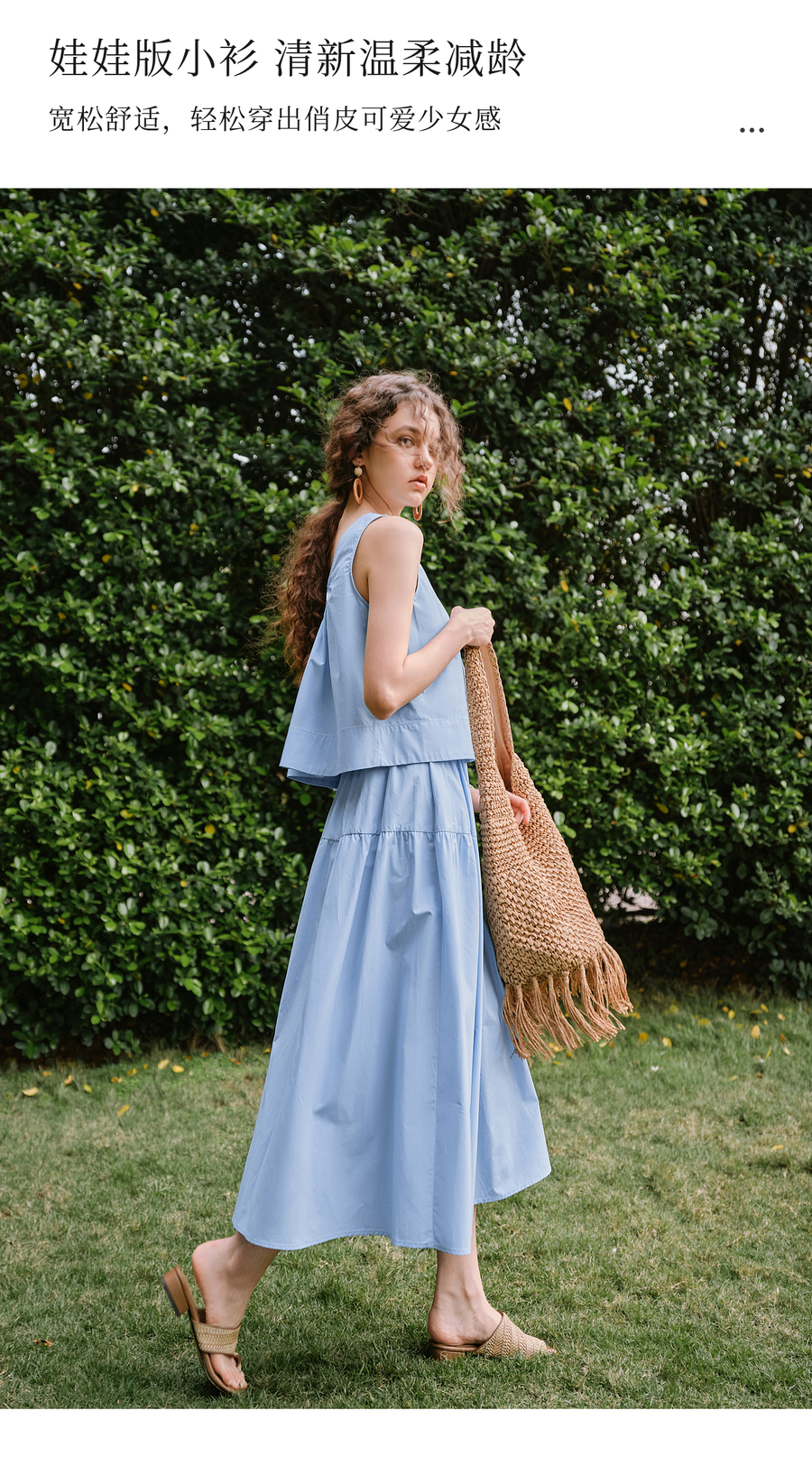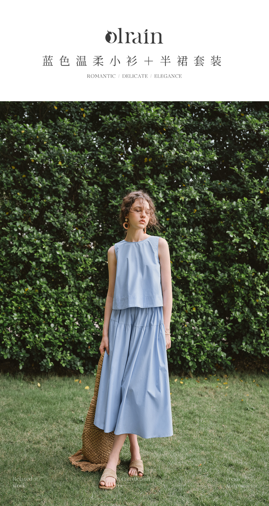 OLrain欧芮儿蓝色温柔小衫女夏季2025年新款清新减龄半裙两件套装
