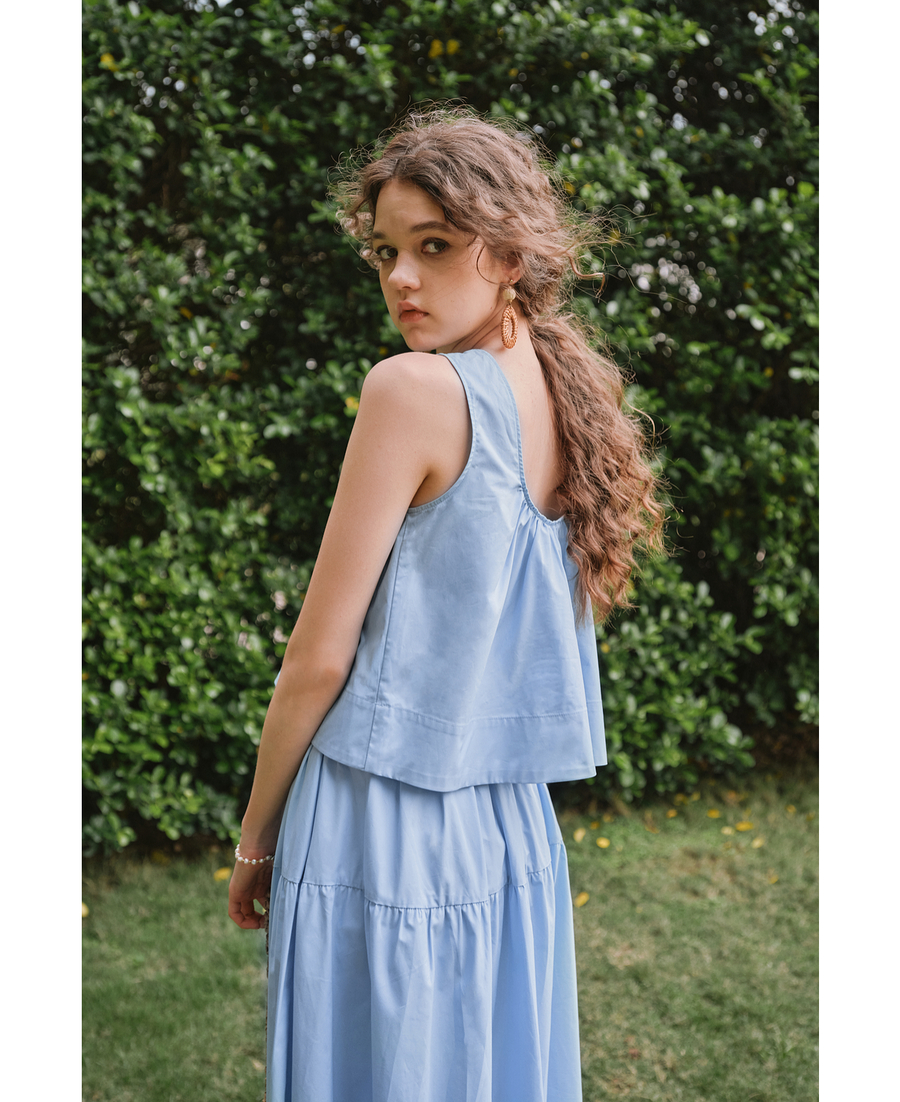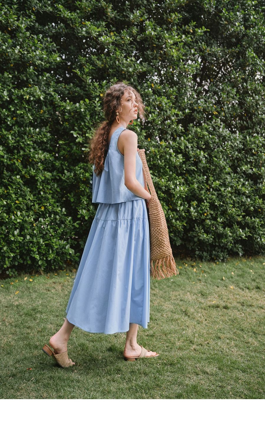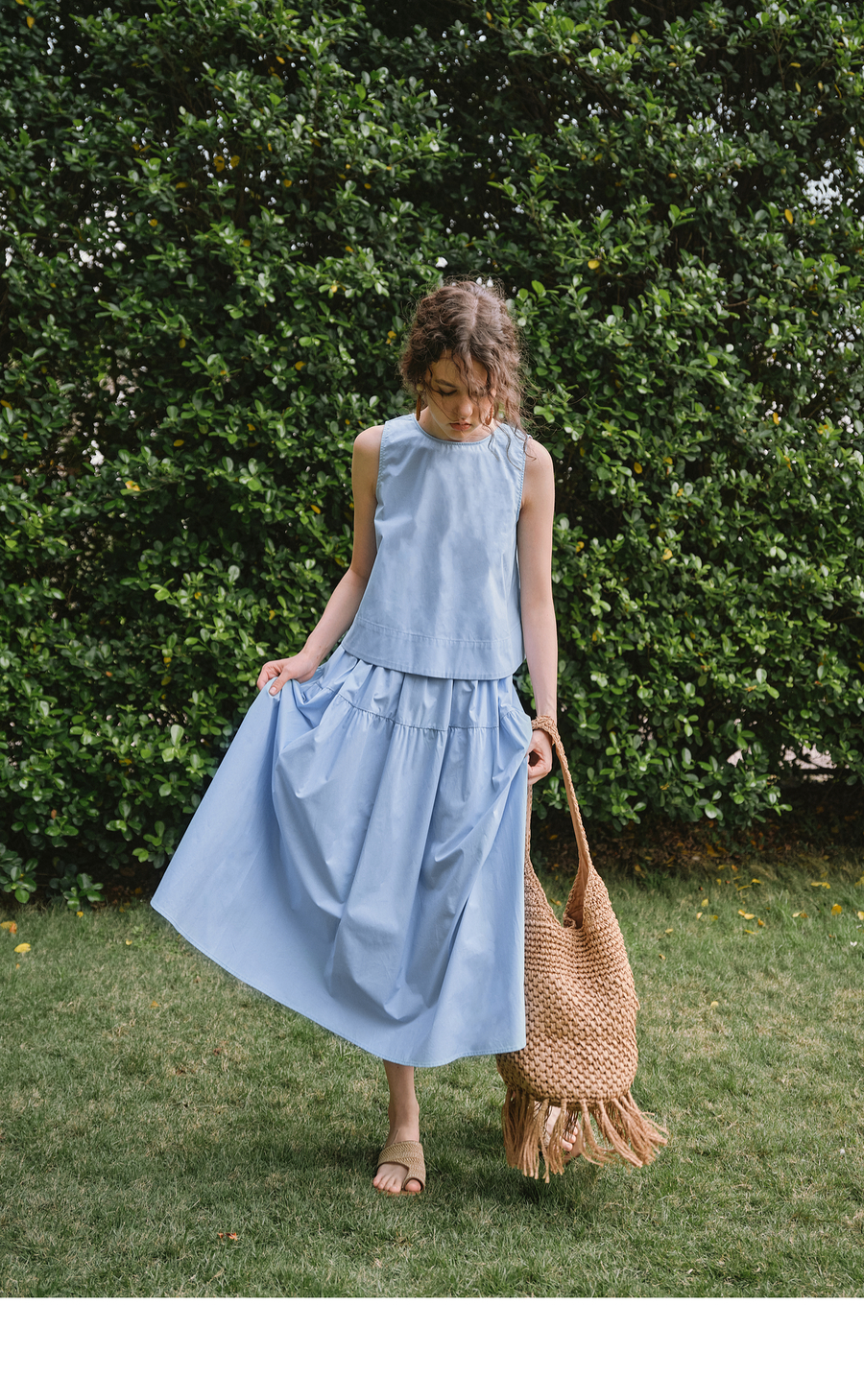 OLrain欧芮儿蓝色温柔小衫女夏季2025年新款清新减龄半裙两件套装
