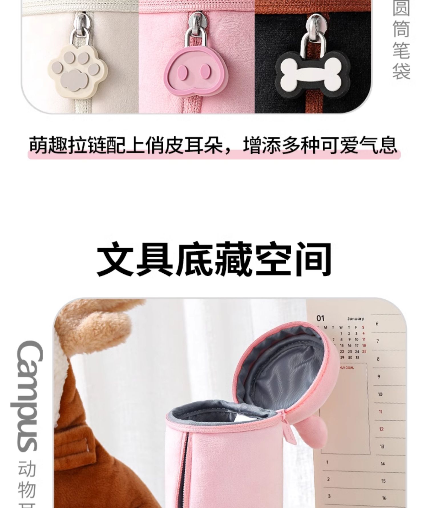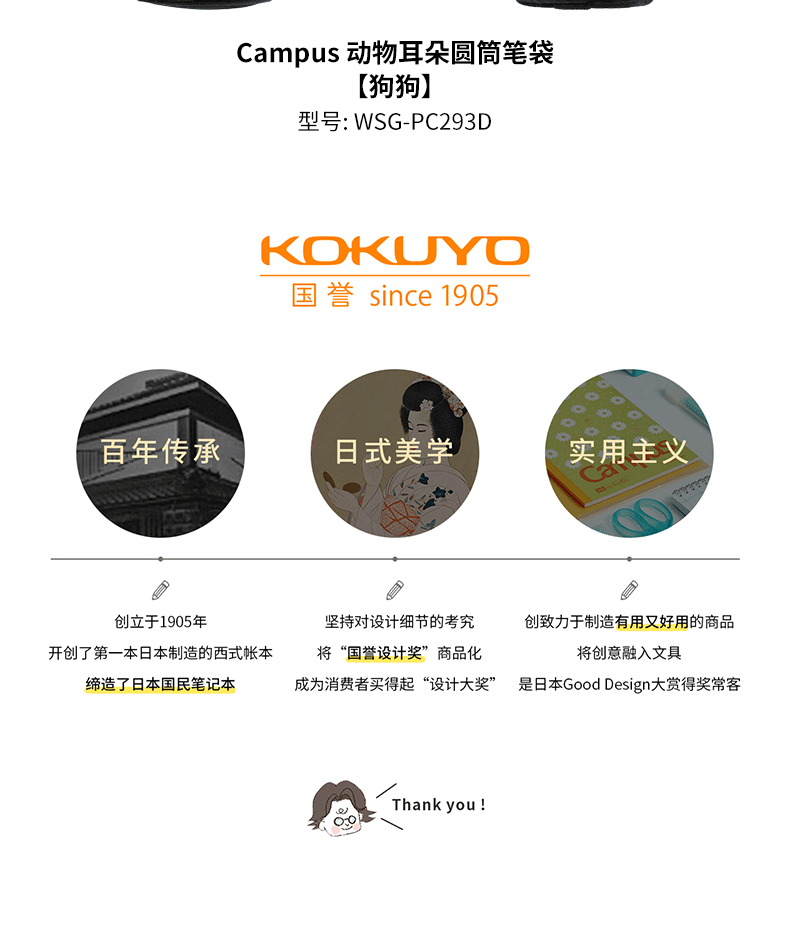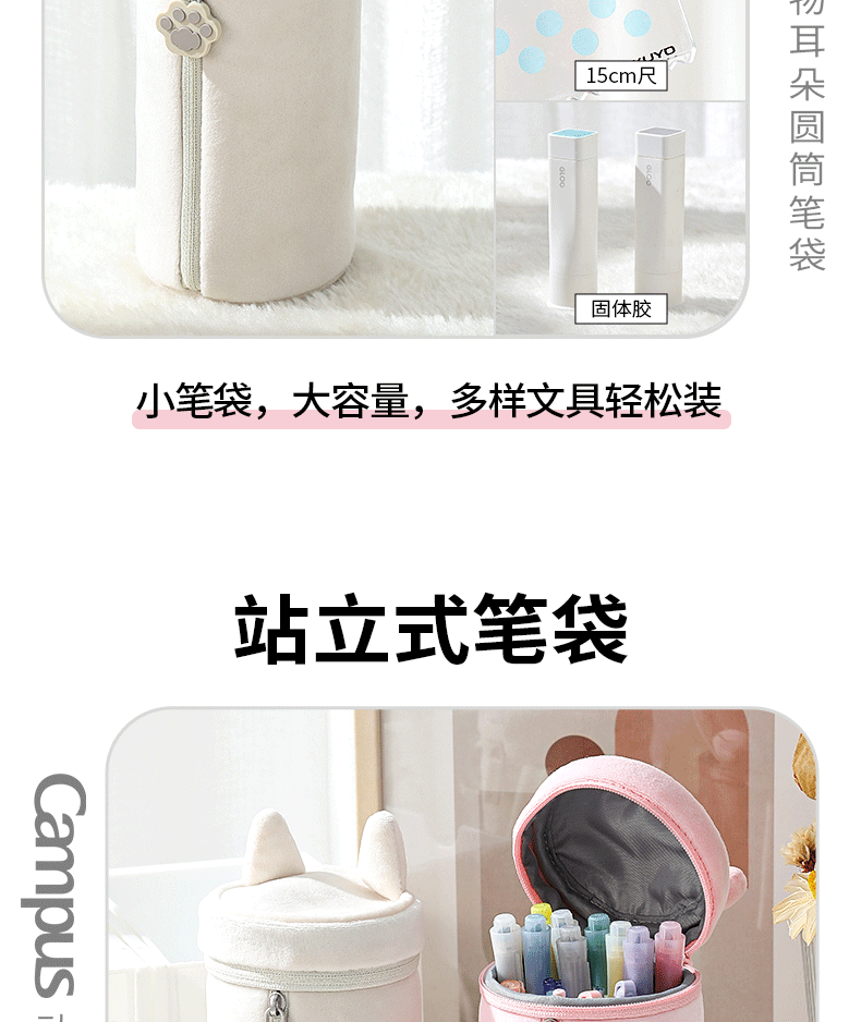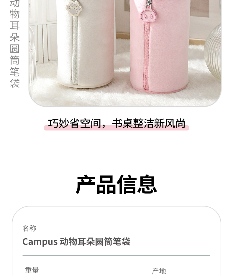 国誉Campus 动物耳朵圆筒笔袋