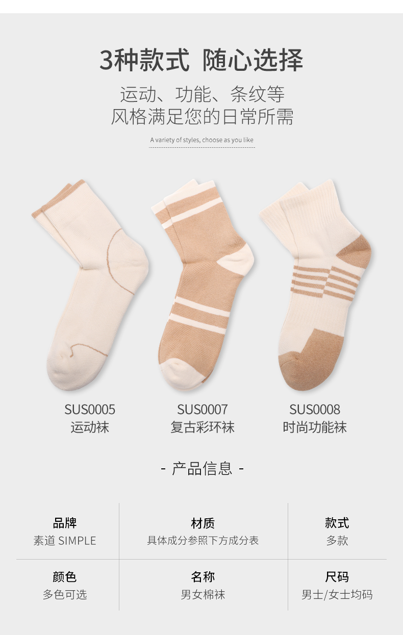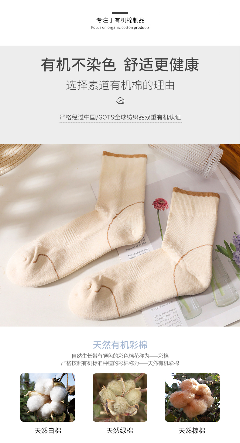 素道敦煌天然有机彩棉袜 情侣加厚秋冬保暖袜 棉质男女士中筒袜