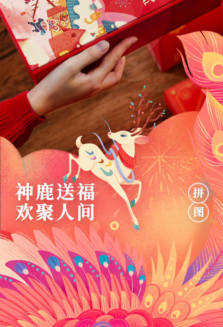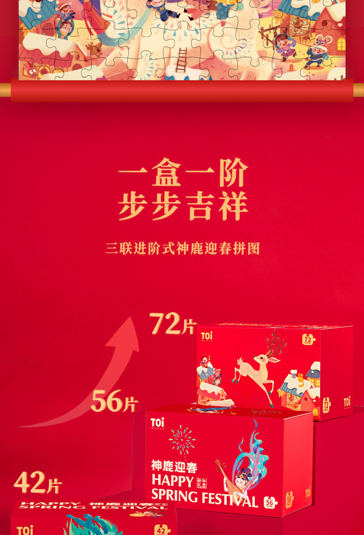 TOI图益神鹿迎春新年拼图礼盒 儿童益智桌游玩具 3-4-5-6岁男孩女孩玩具 有恐龙杯赠品哦! 全国包邮(12.10号左右开始发货)~ nj
