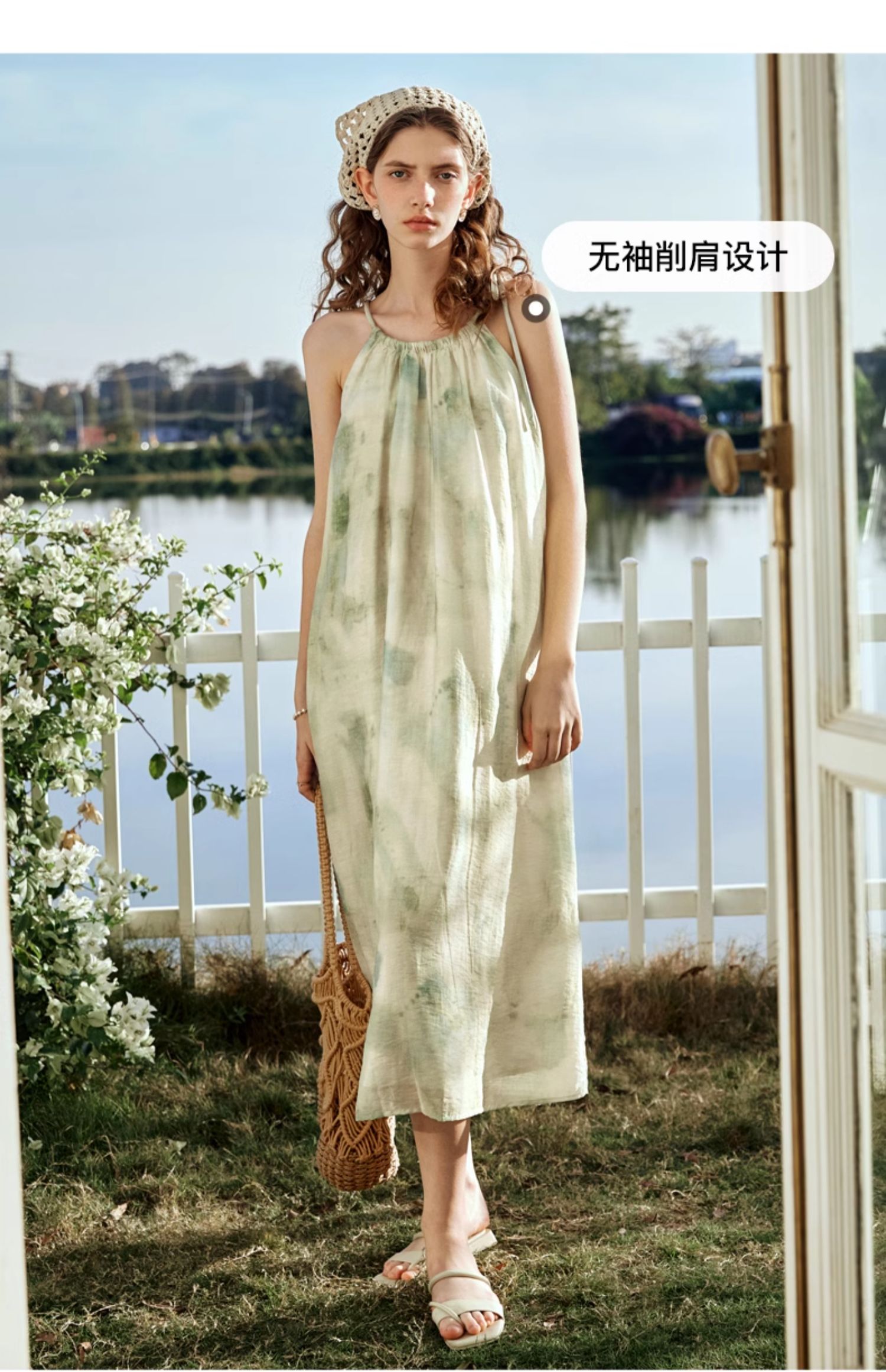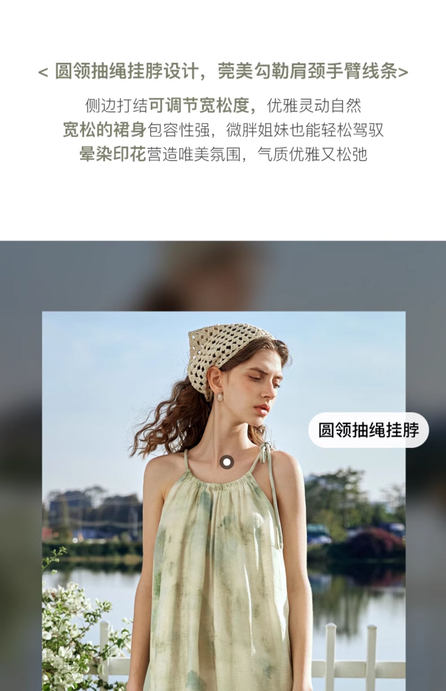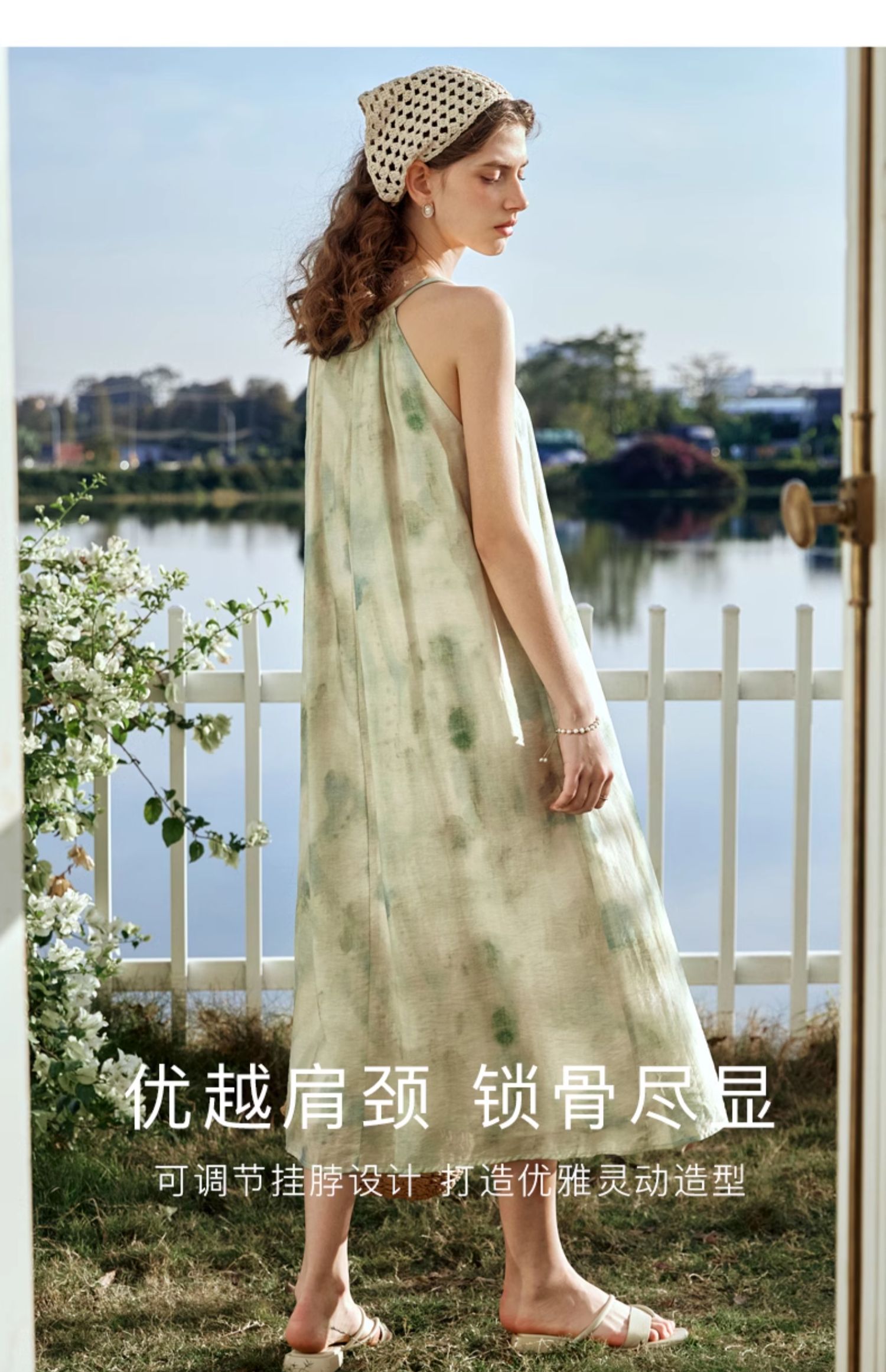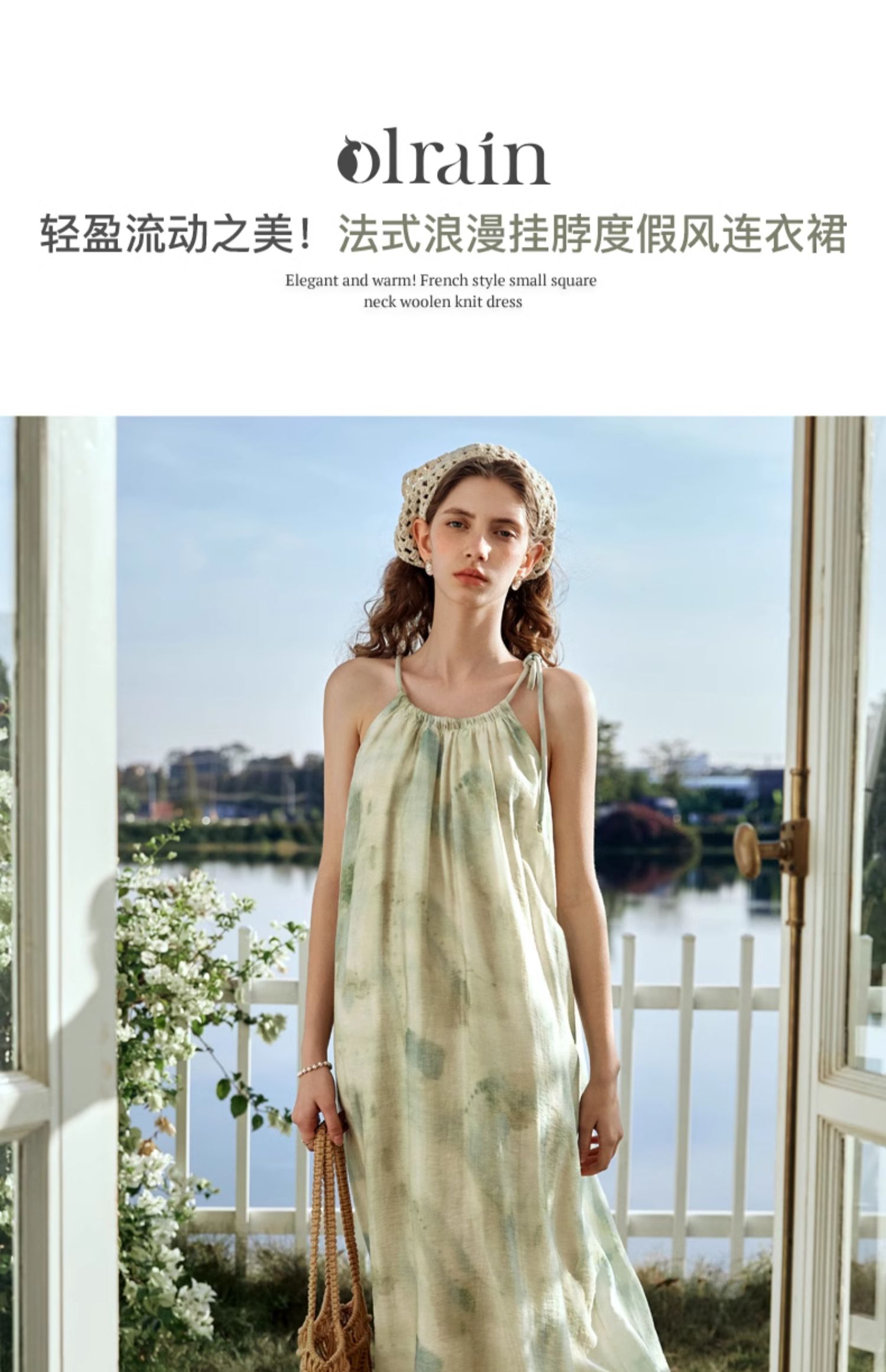 OLrain欧芮儿法式连衣裙女夏季2024年新款挂脖度假风宽松吊带长裙