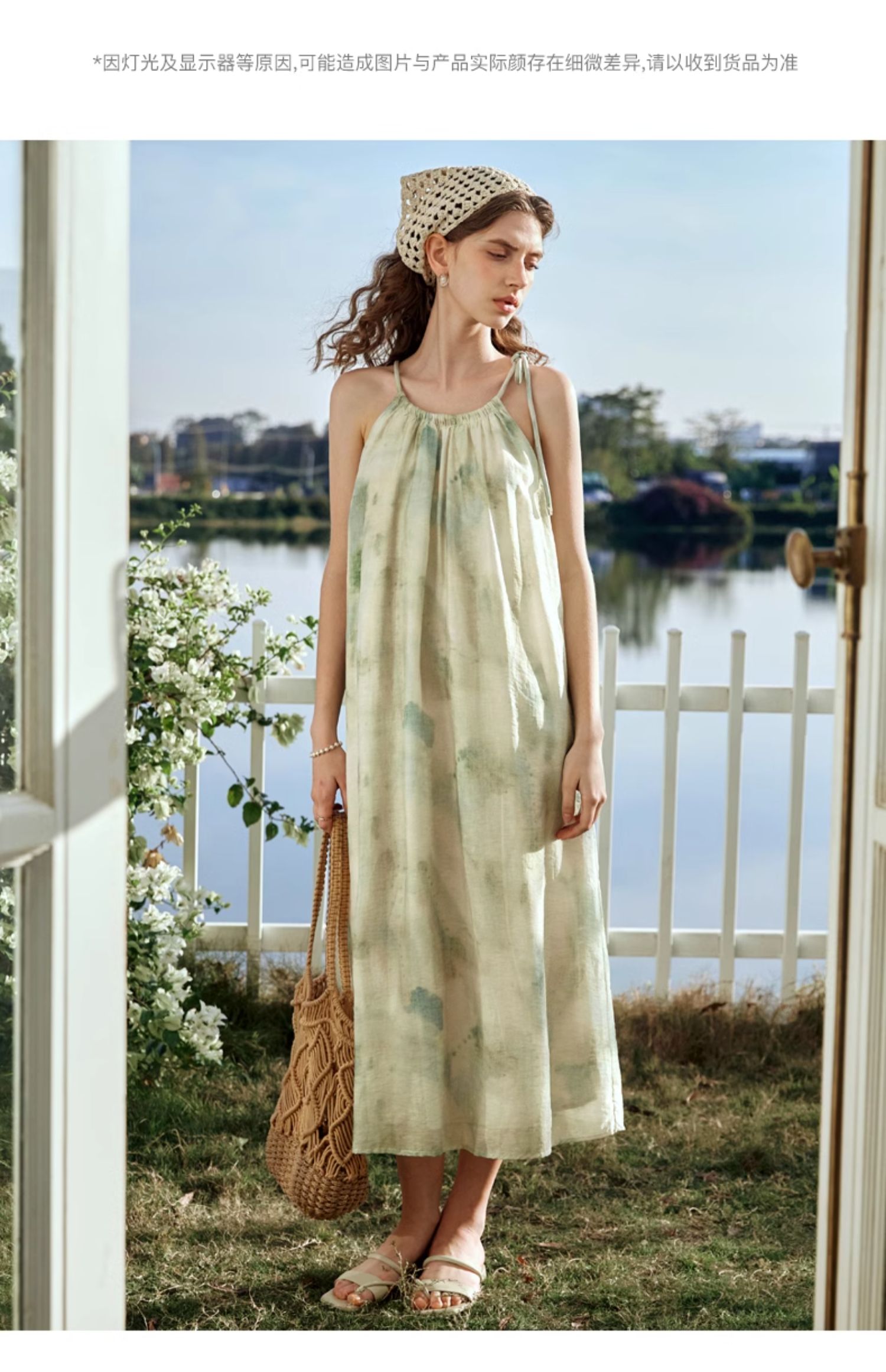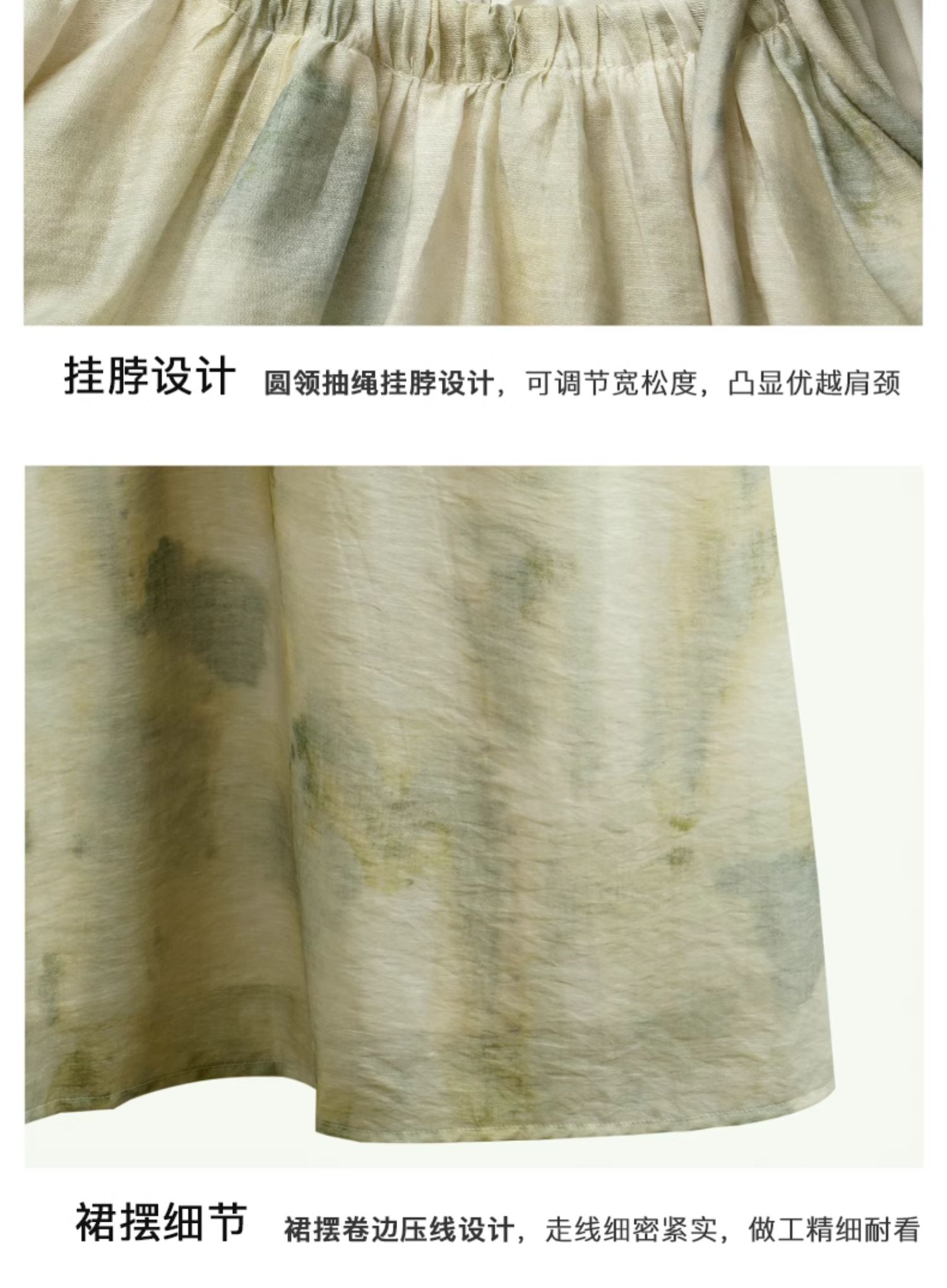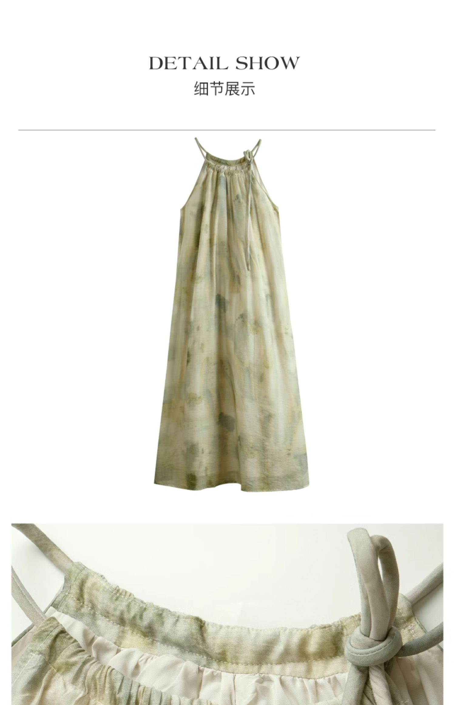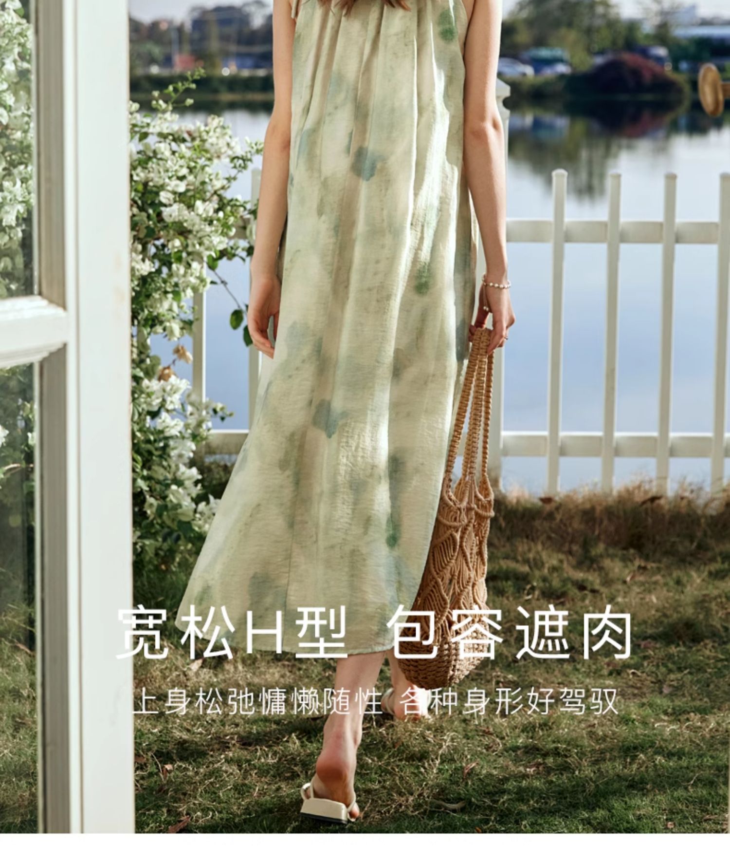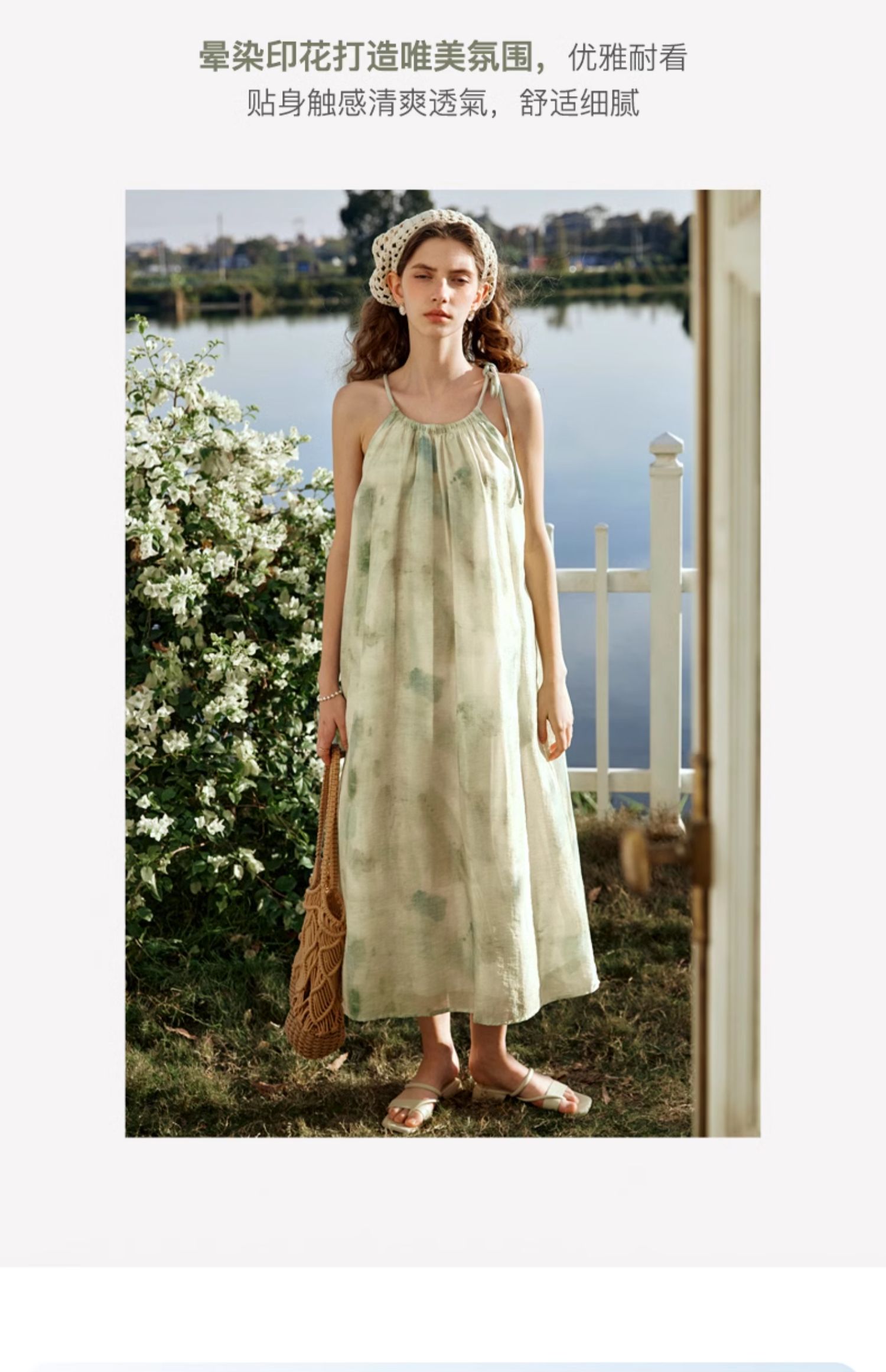 OLrain欧芮儿法式连衣裙女夏季2024年新款挂脖度假风宽松吊带长裙