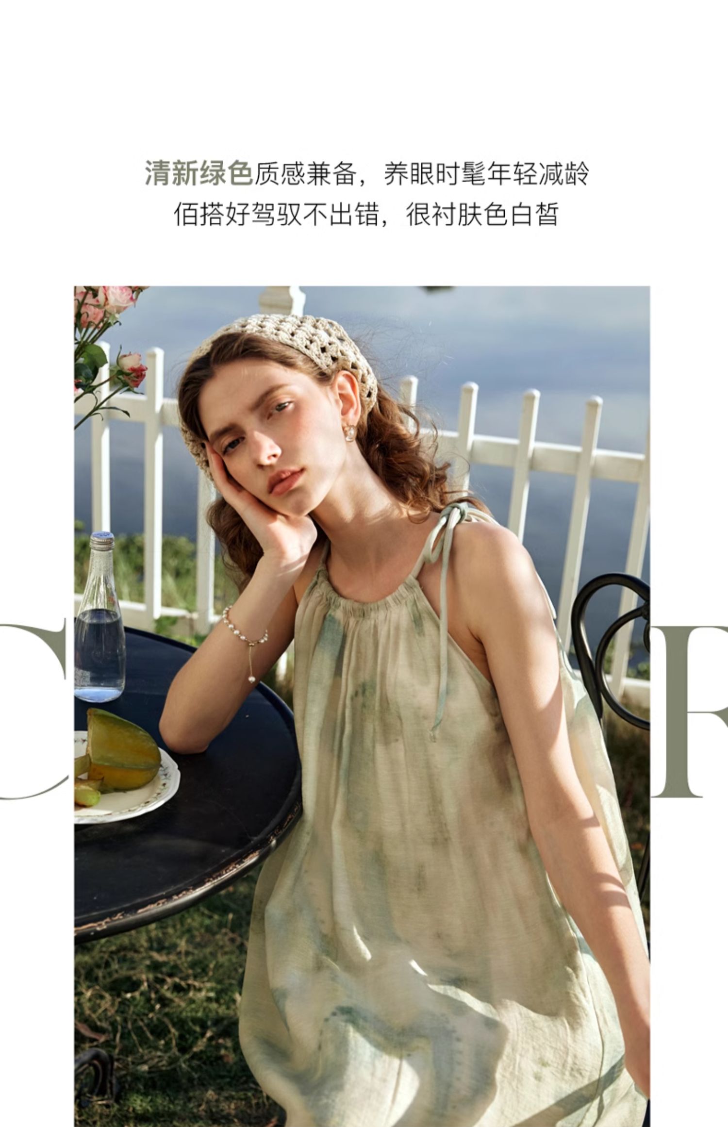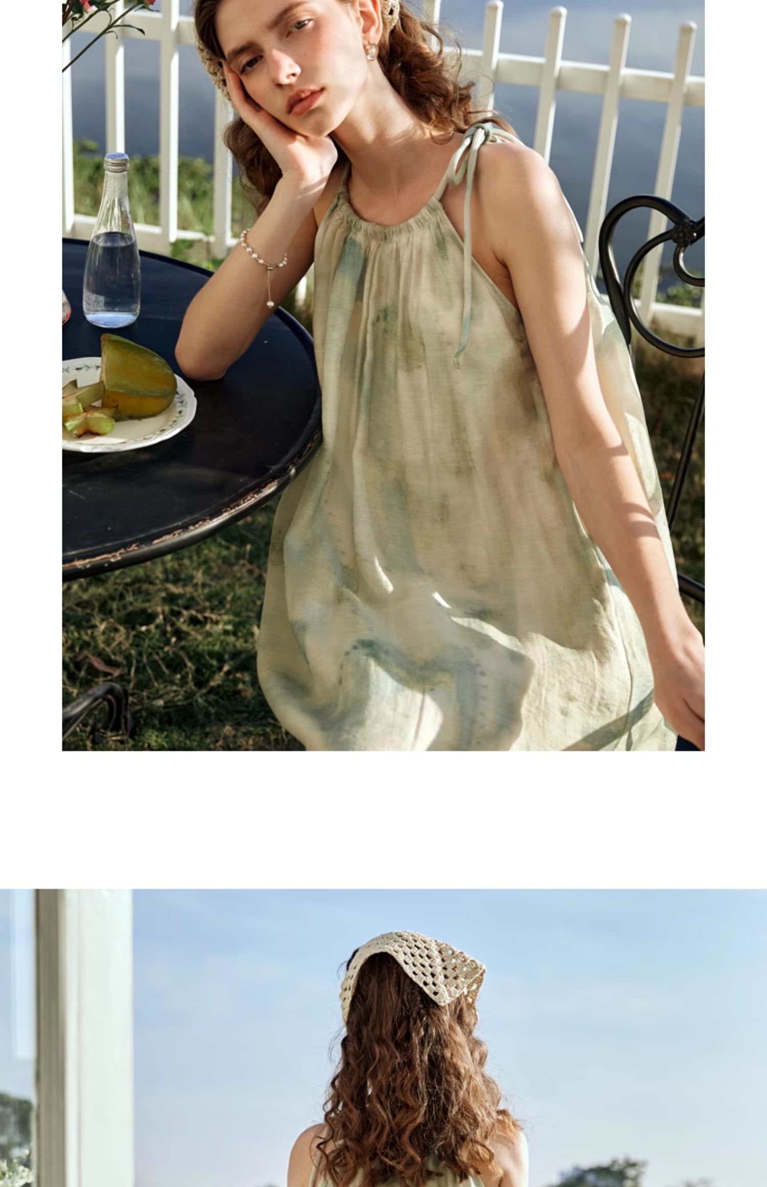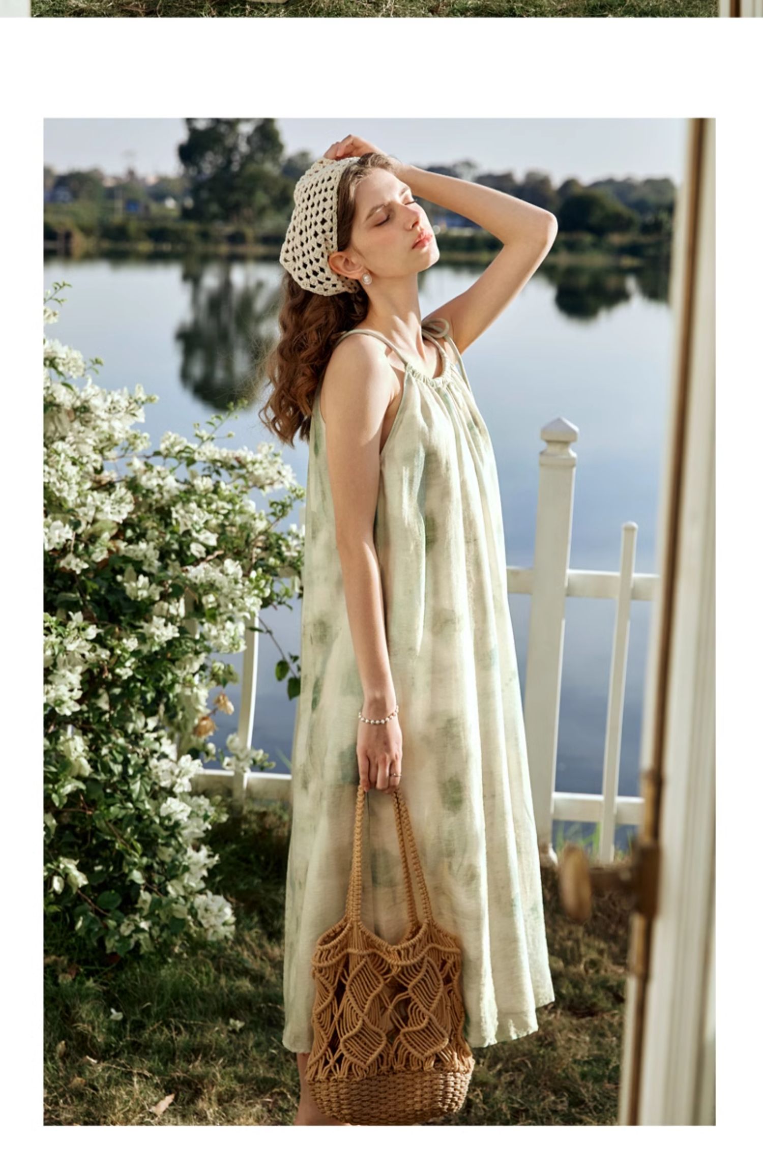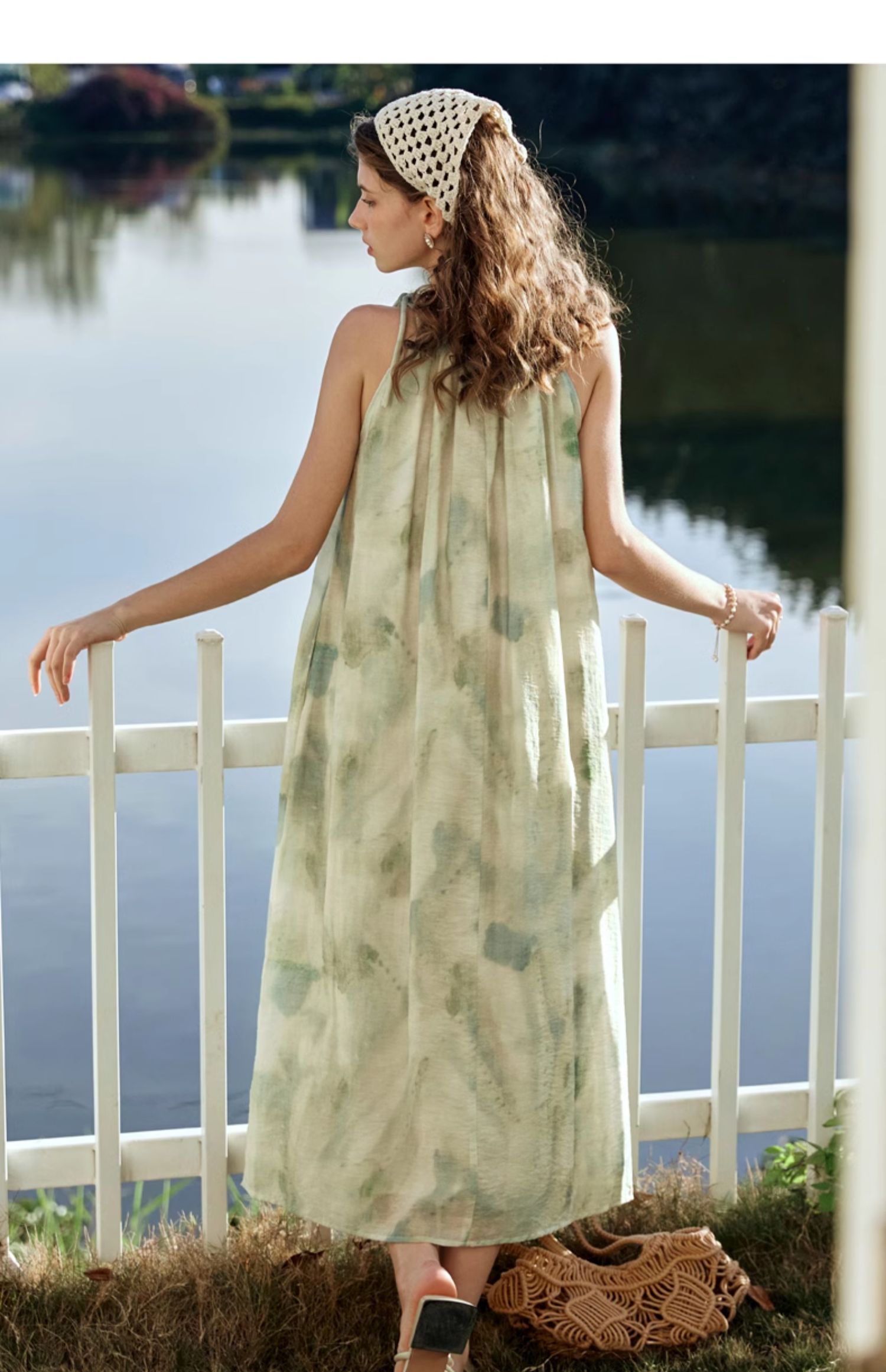 OLrain欧芮儿法式连衣裙女夏季2024年新款挂脖度假风宽松吊带长裙