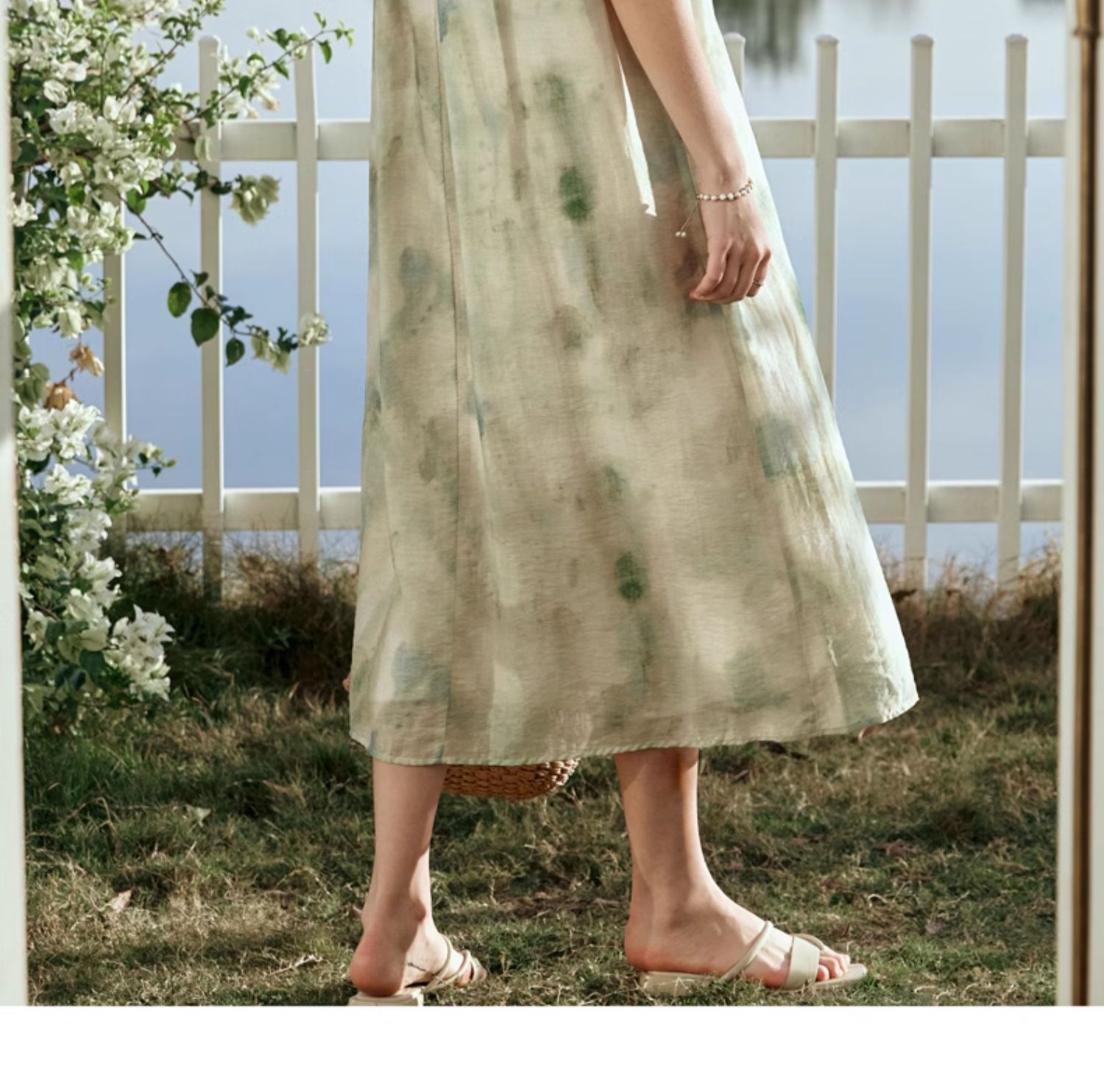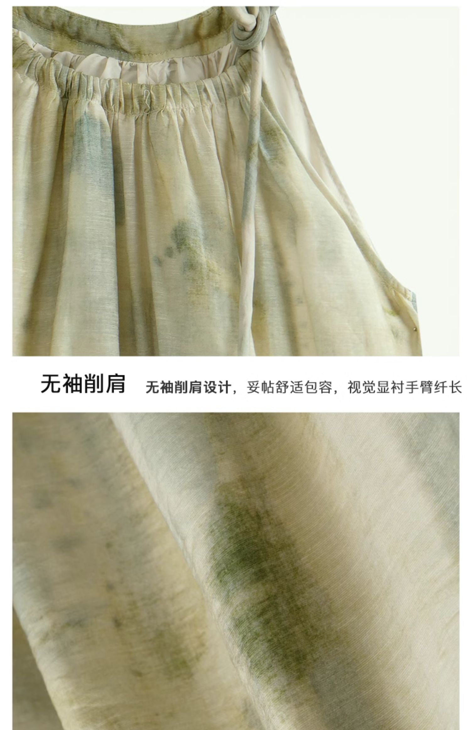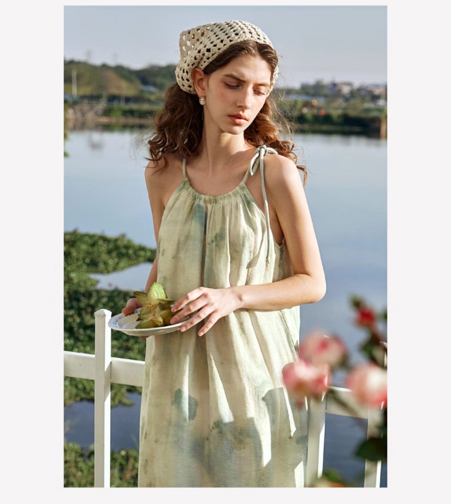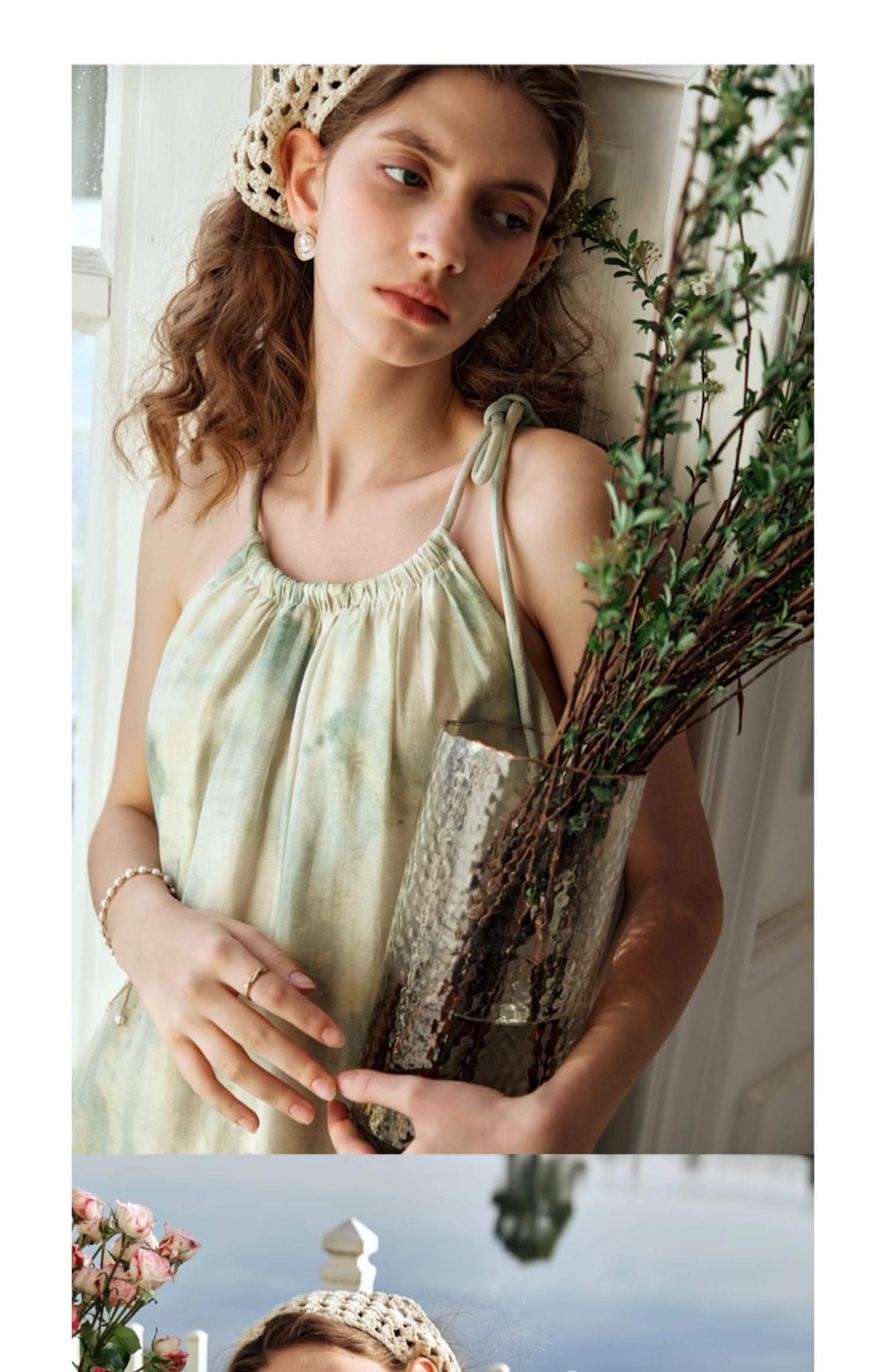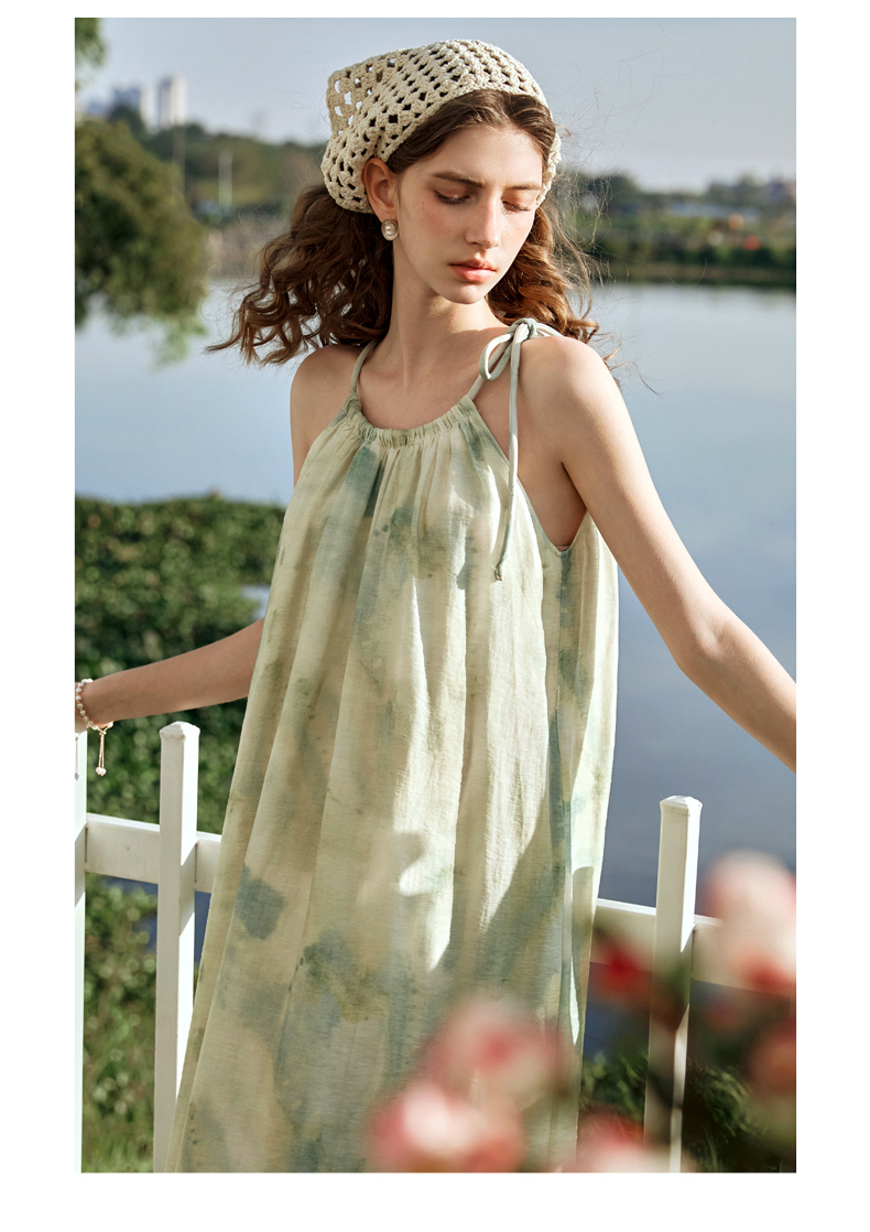 OLrain欧芮儿法式连衣裙女夏季2024年新款挂脖度假风宽松吊带长裙