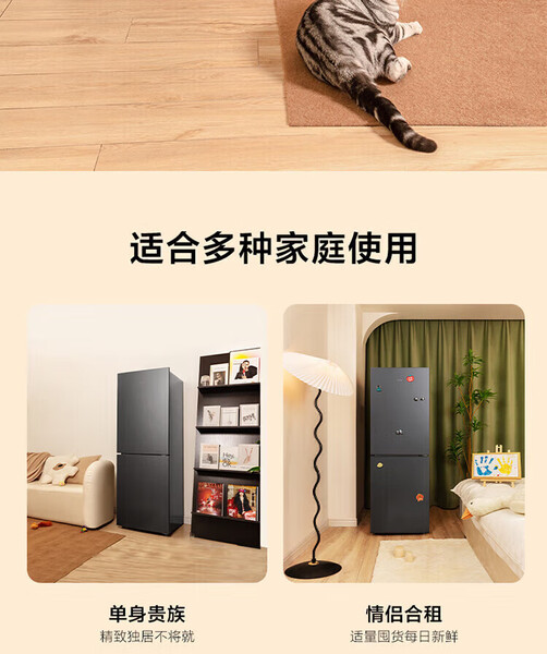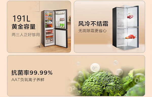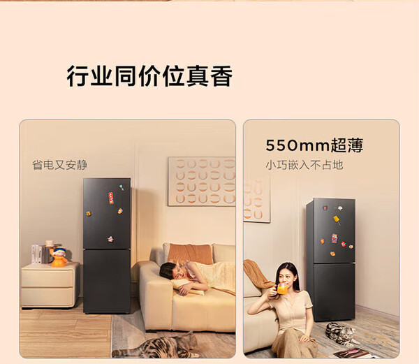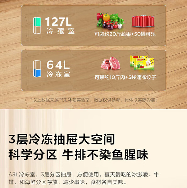 TCL 冰箱 R191S1-B 191升 两门 风冷 定频 二级能效 节能降噪 印象灰 550mm超薄
