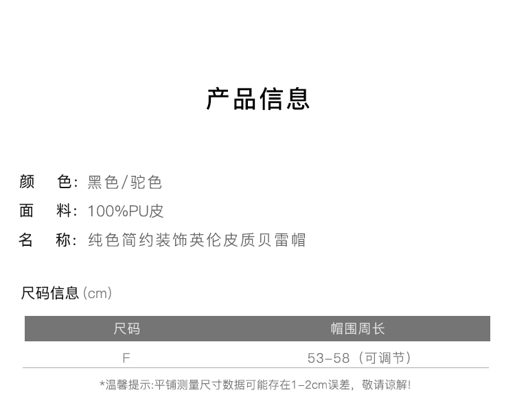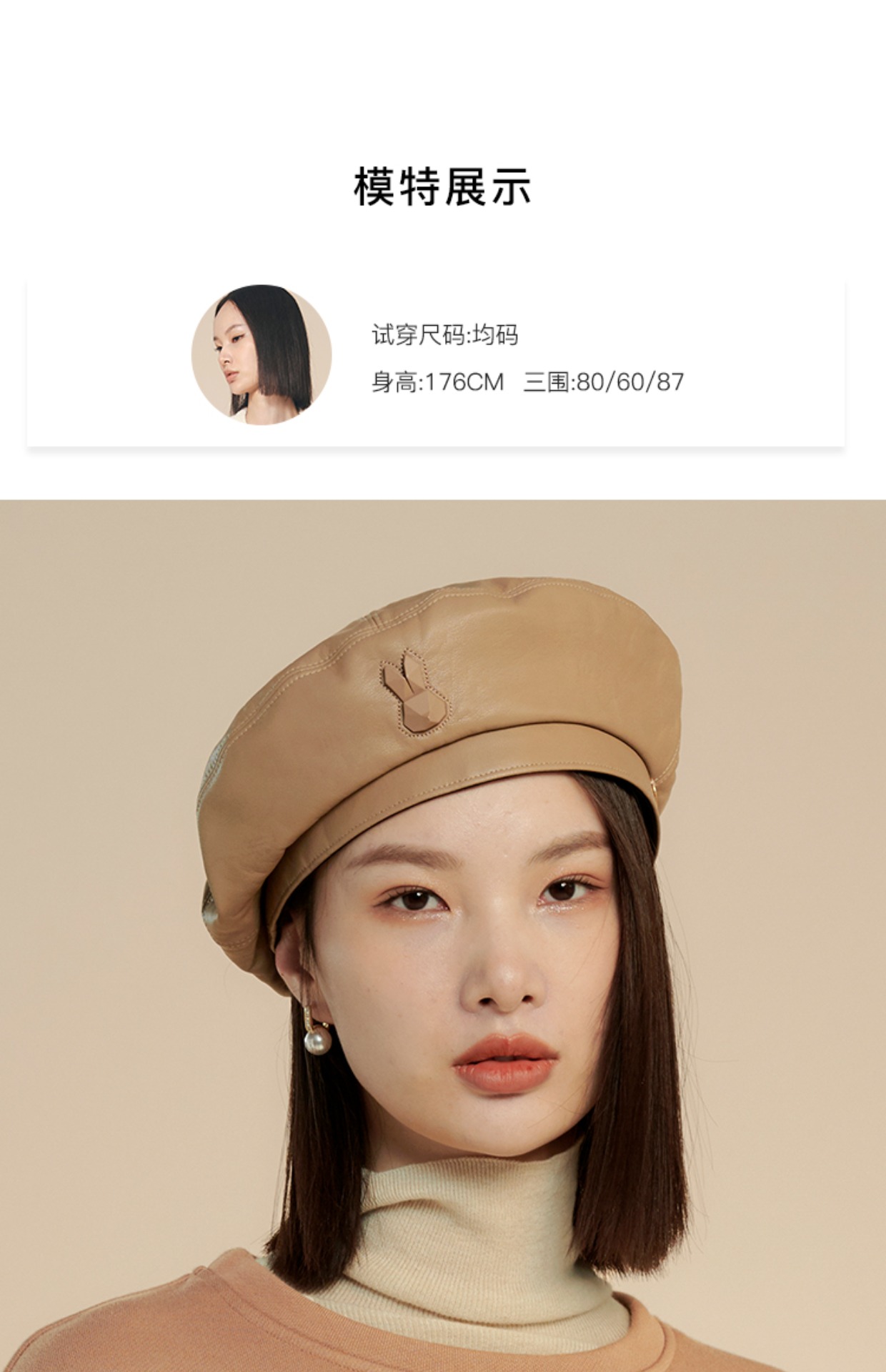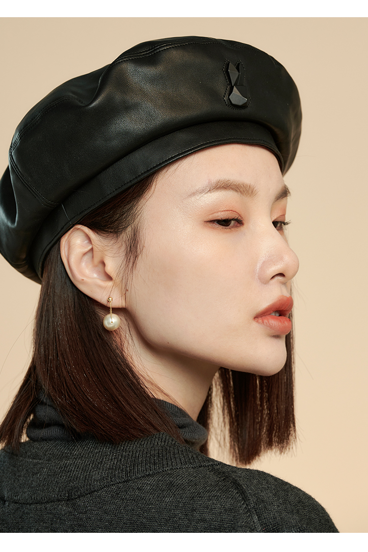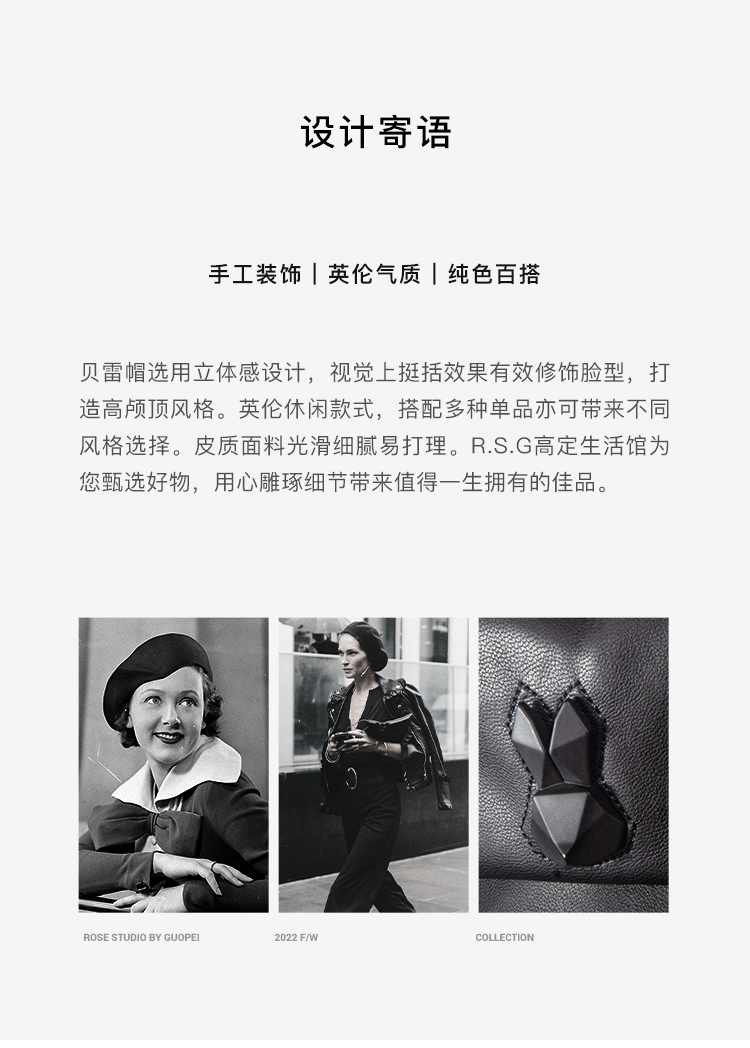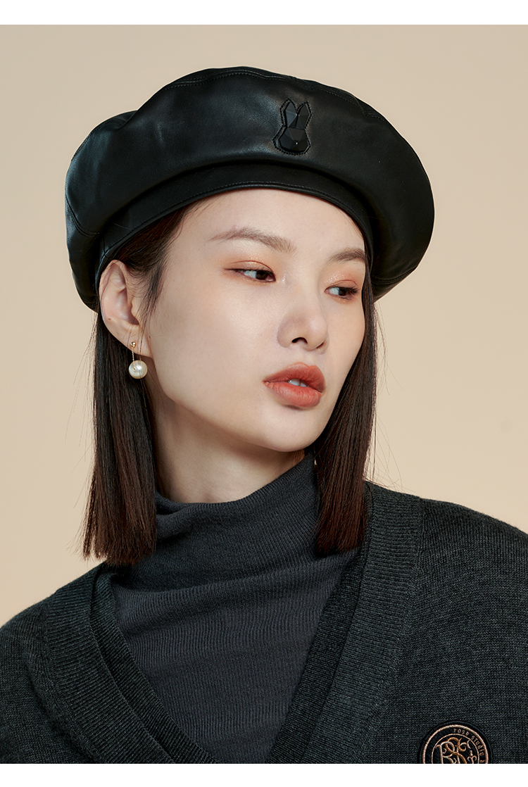 RSG郭培成衣品牌春秋季纯色简约装饰英伦皮质贝雷帽子黑色