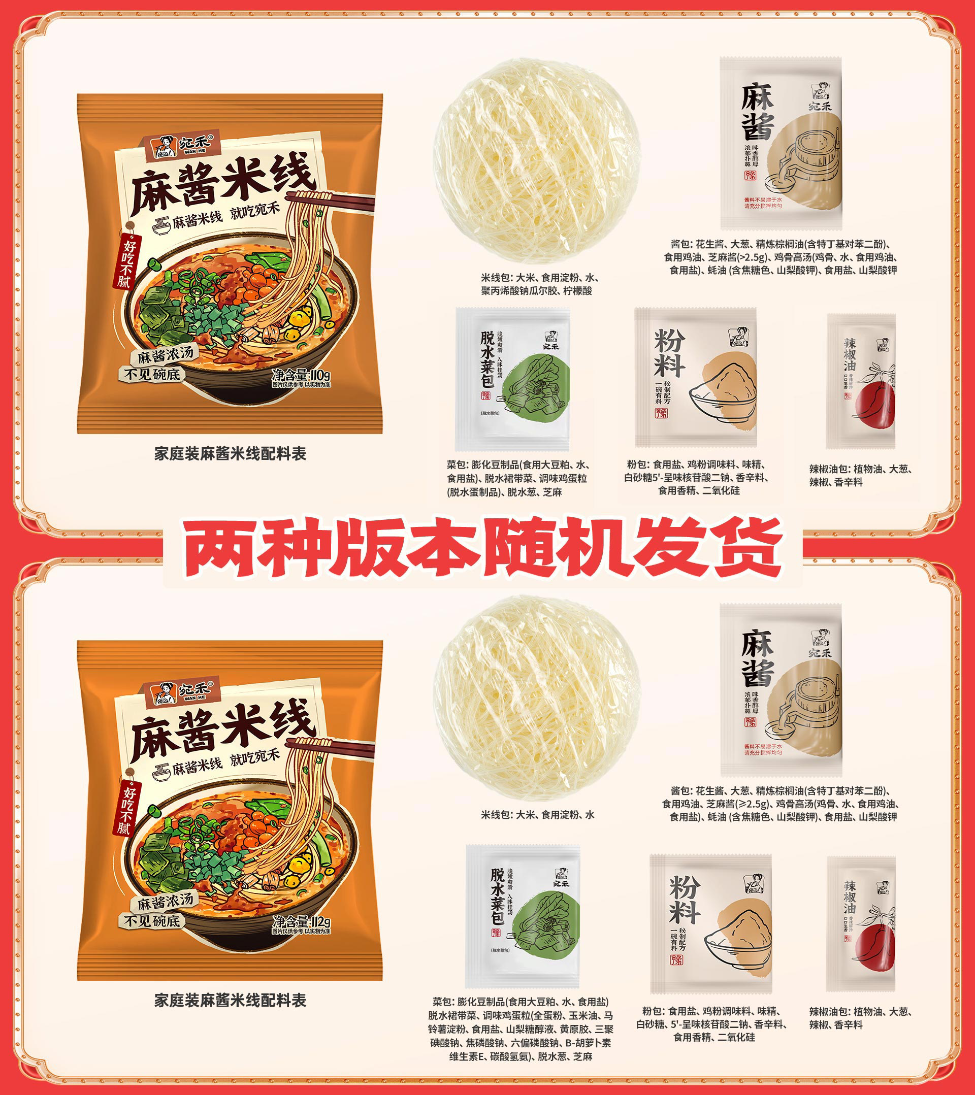 【家庭特惠装】宛禾麻酱米线112g*10袋 家庭装速食米线