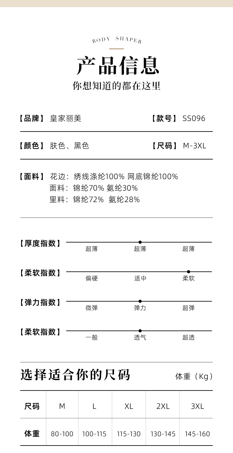 皇家丽美腰背夹塑身衣女收腹束腰瘦身不勒形体衣SS096