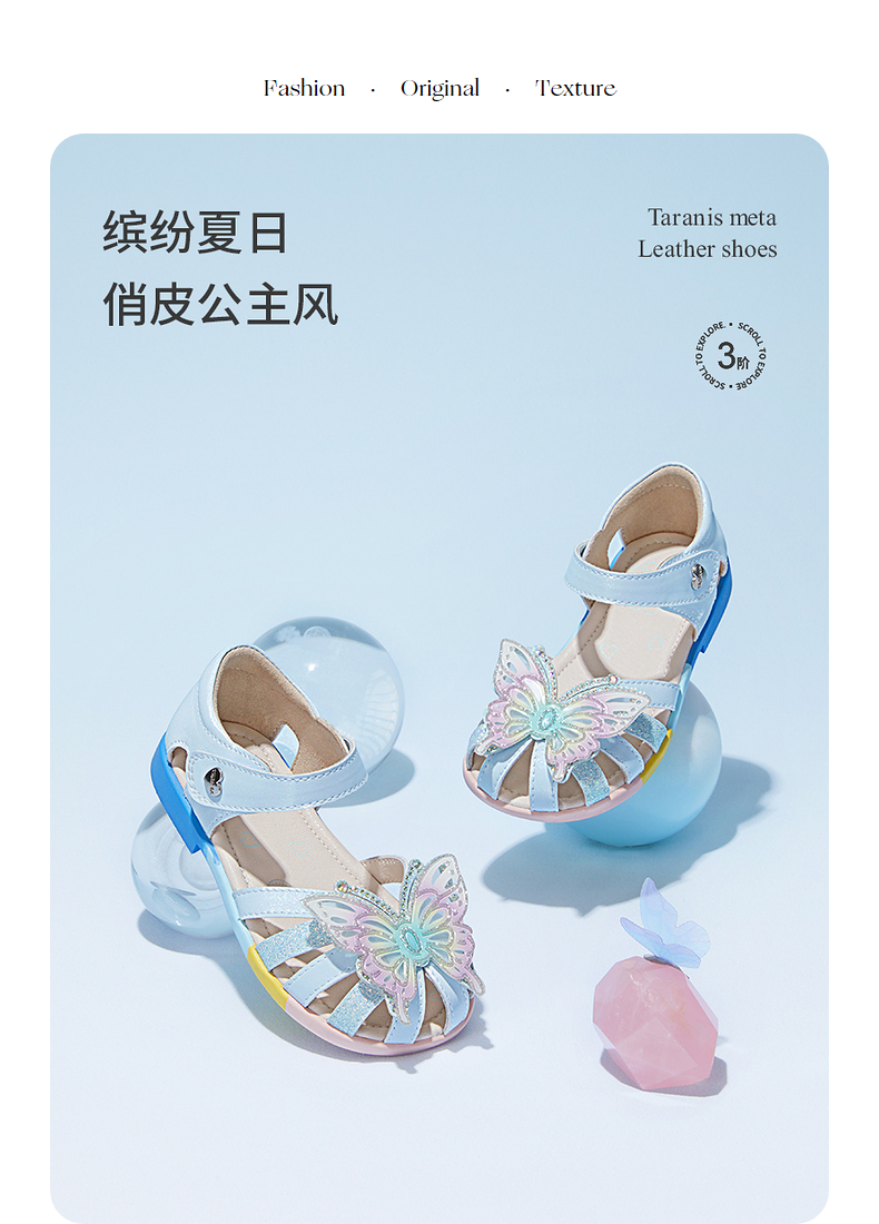 泰兰尼斯meta女童公主凉鞋2023夏季新款儿童鞋小女孩软底包头鞋子 M17X3B2874