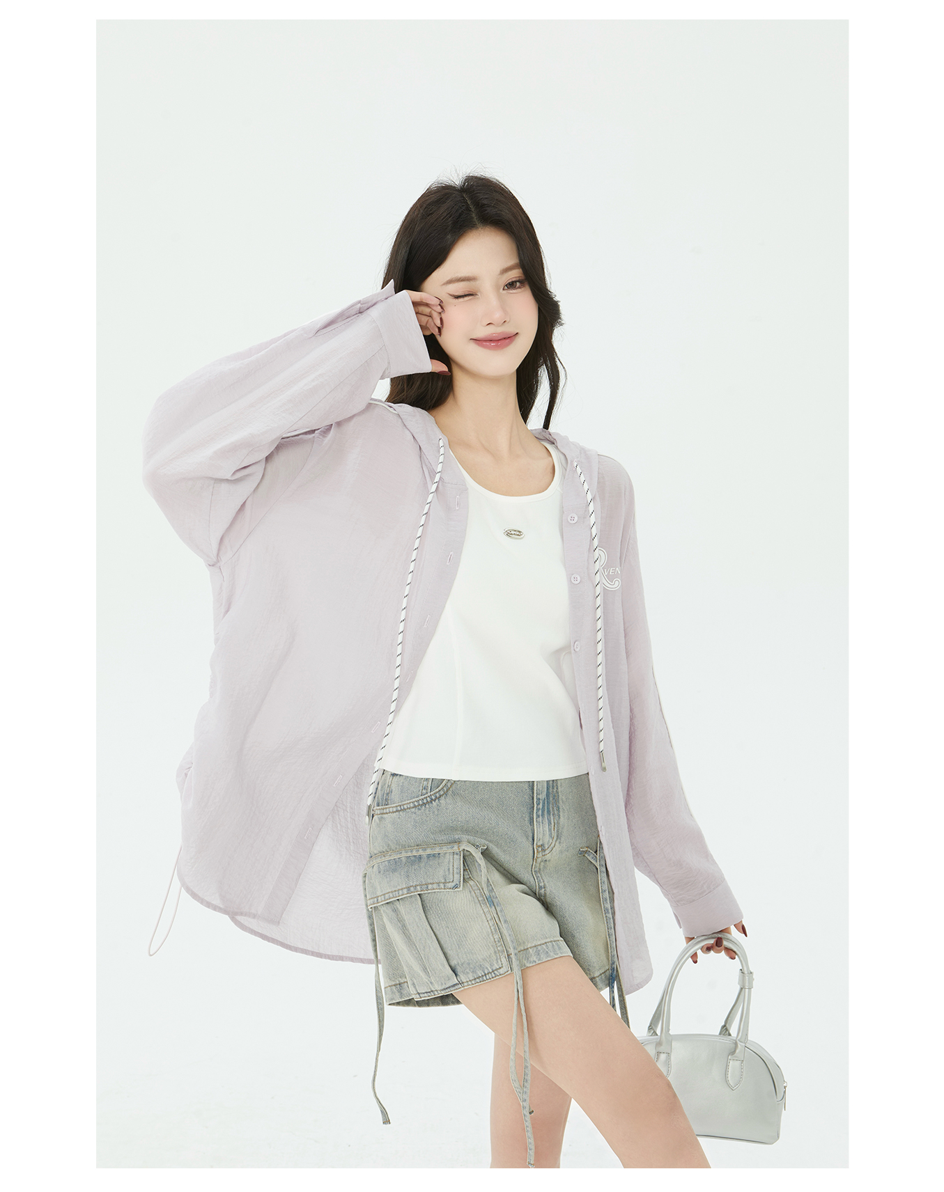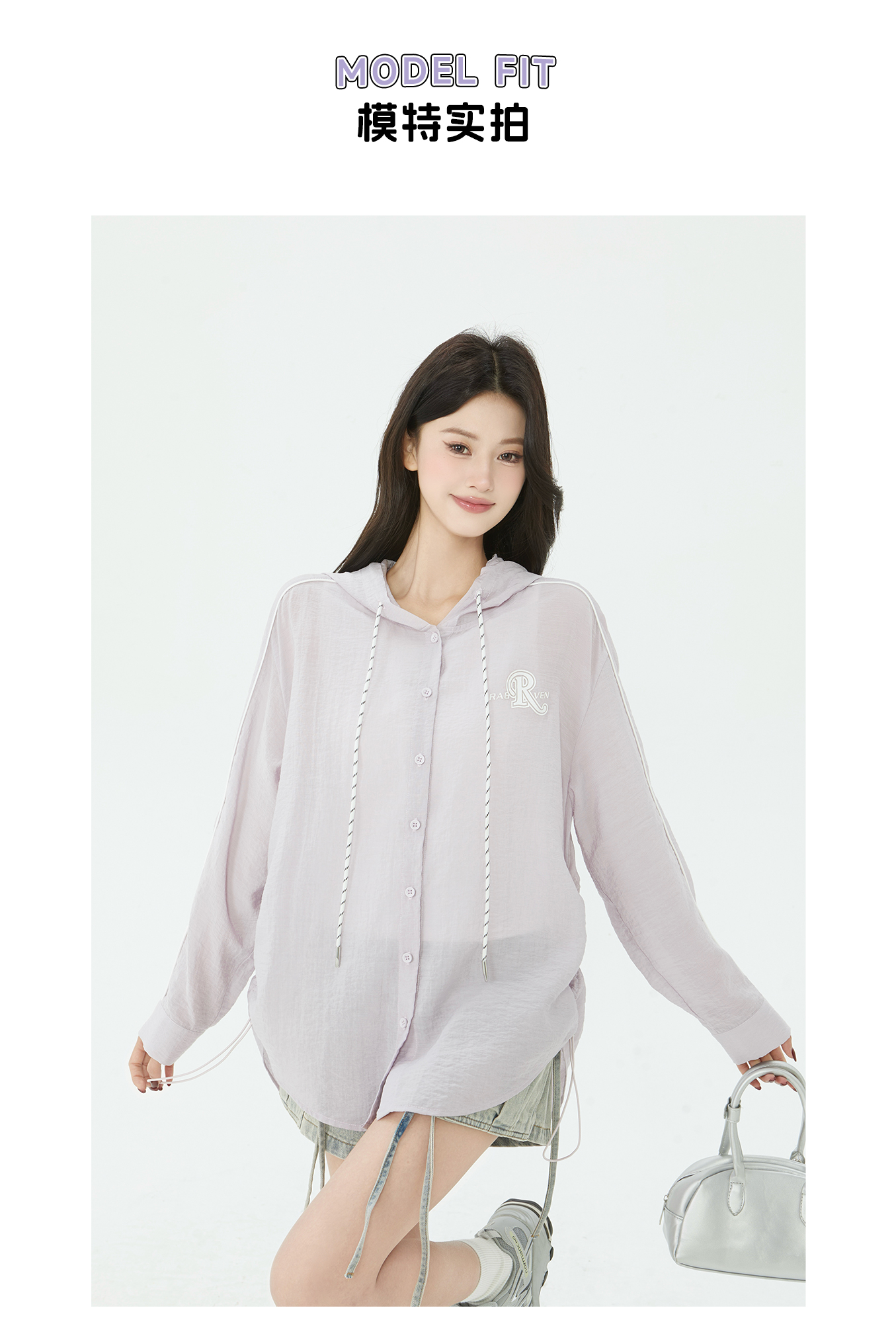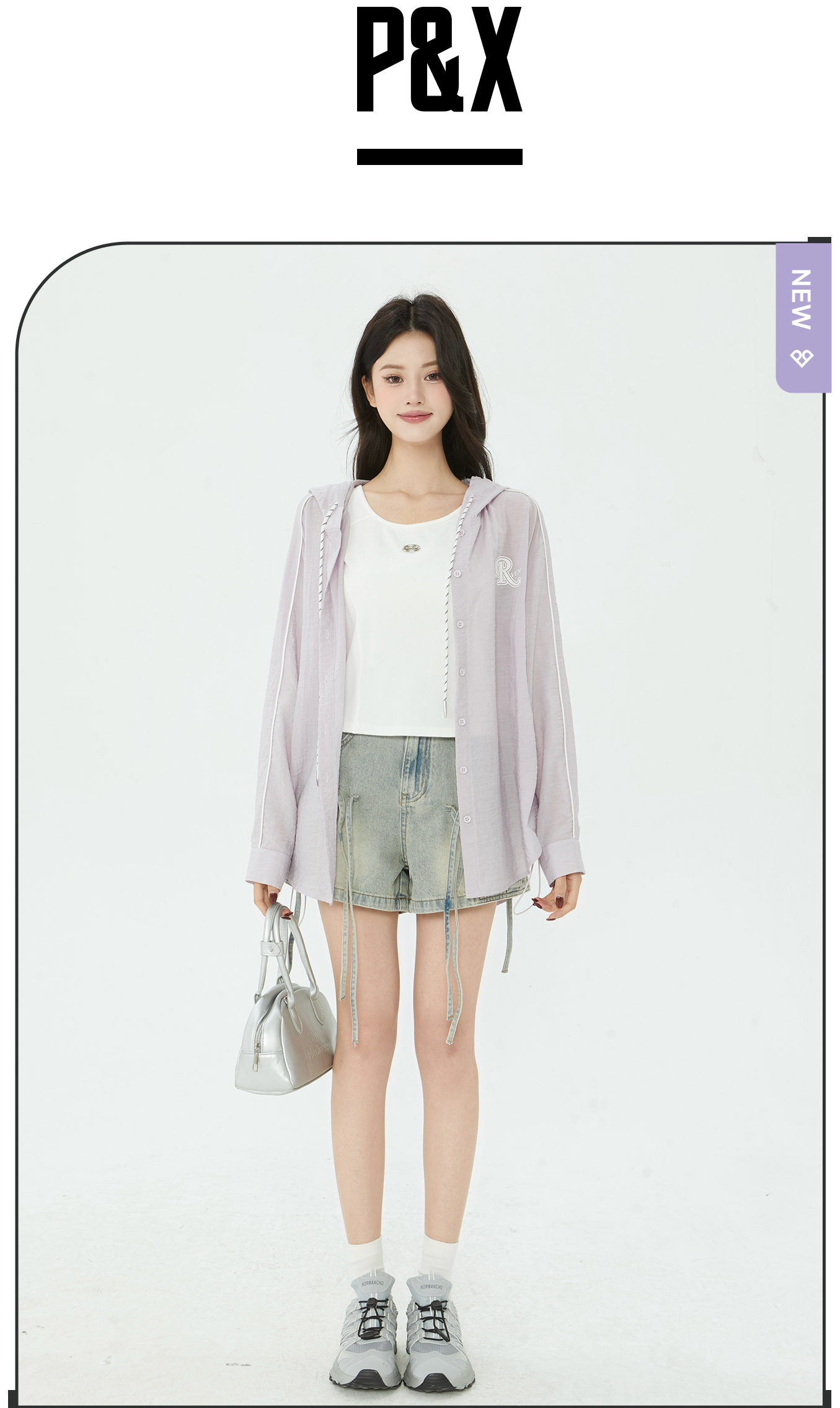 P&X设计师2025夏季新款连帽宽松腰果花纹防晒衬衫825205083 紫色
