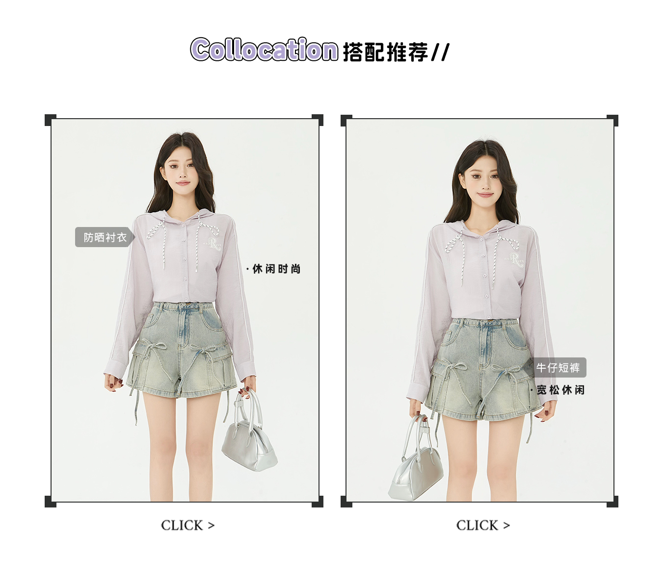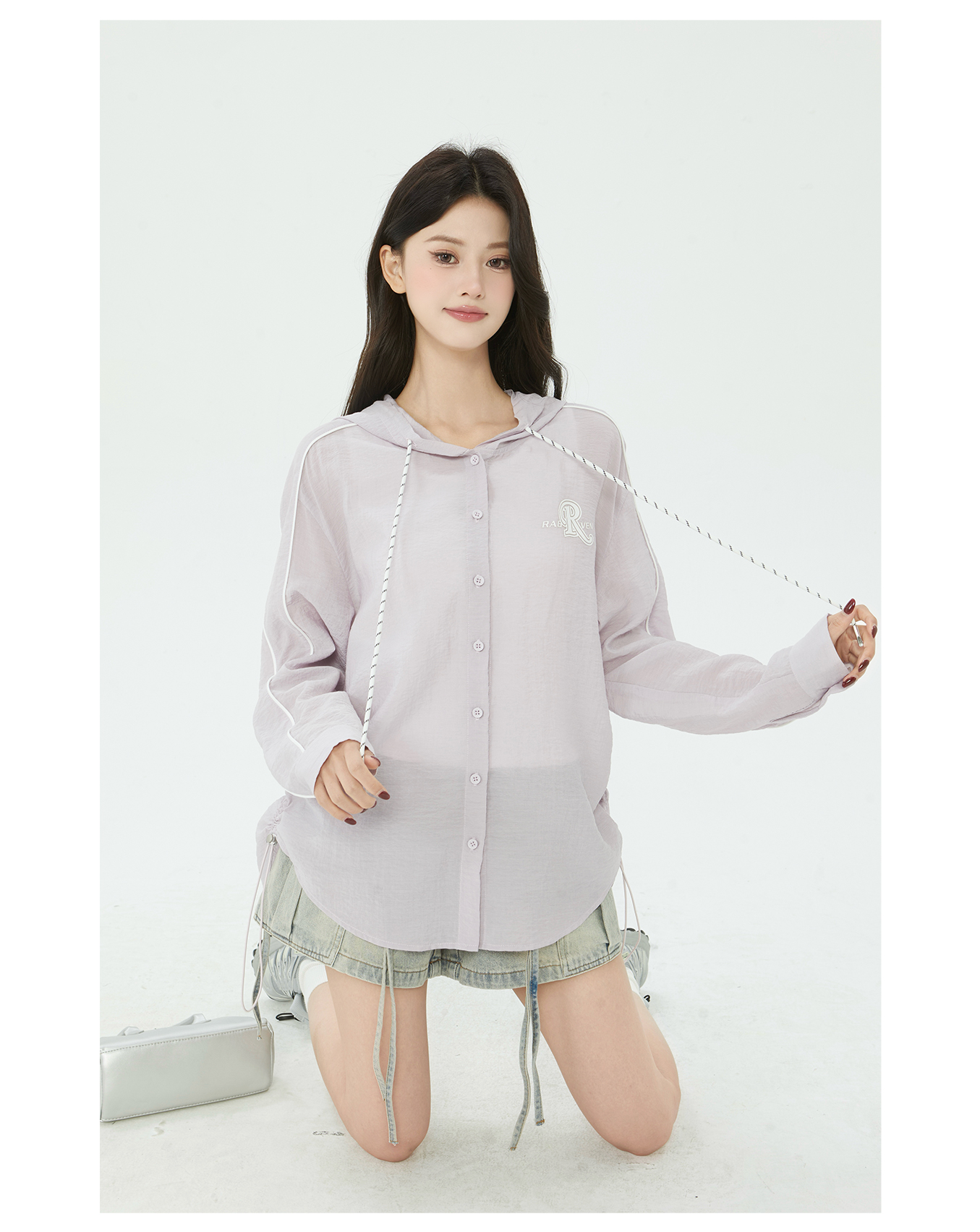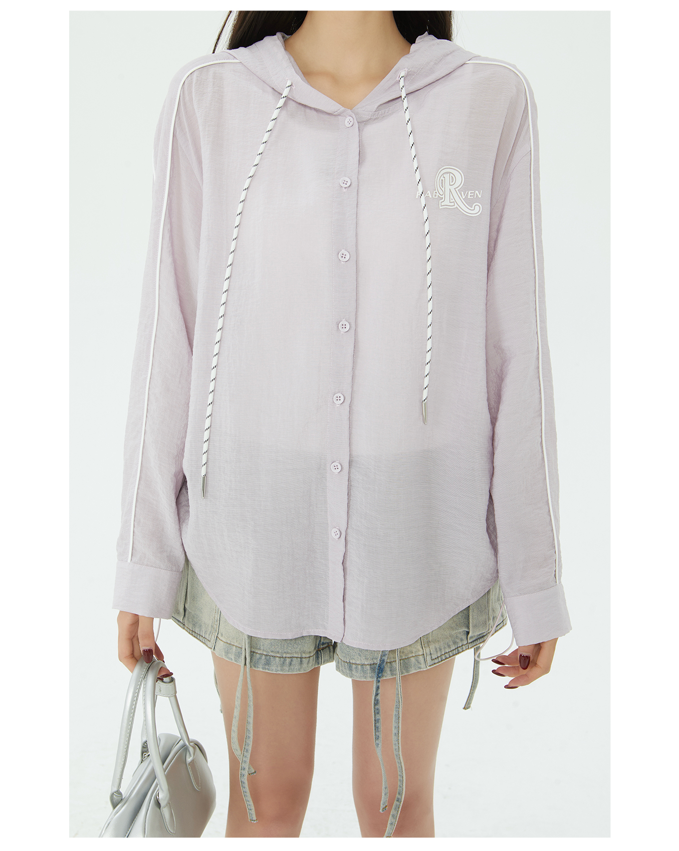 P&X设计师2025夏季新款连帽宽松腰果花纹防晒衬衫825205083 紫色