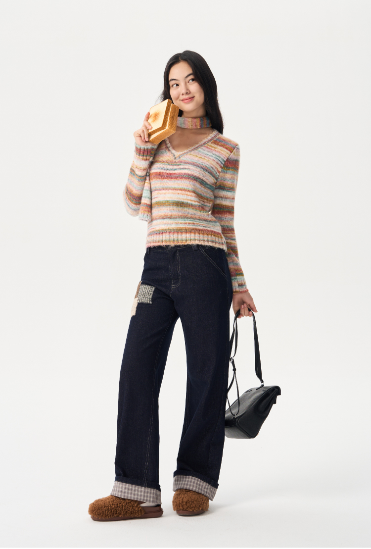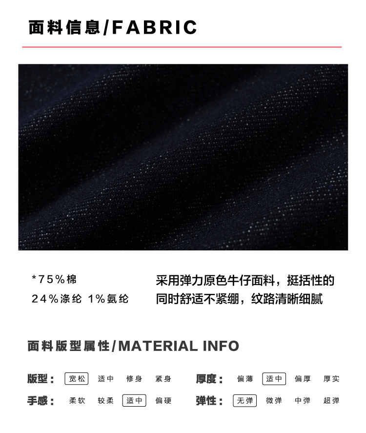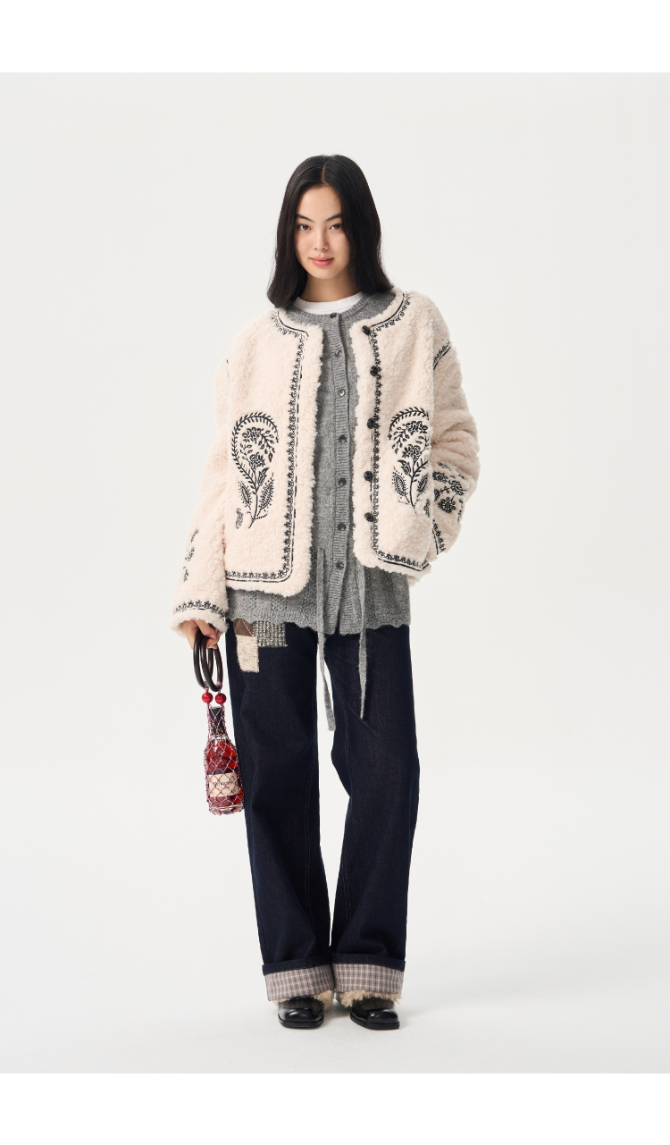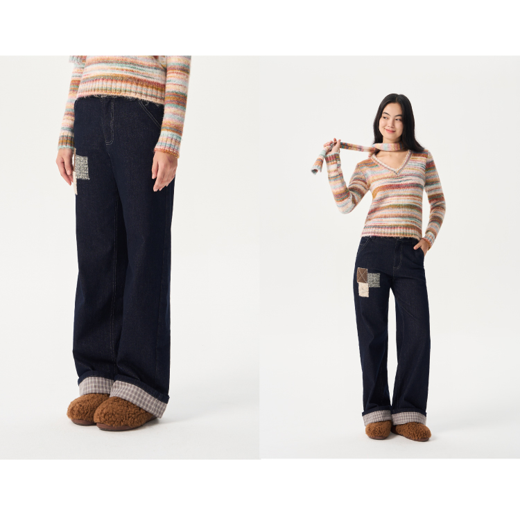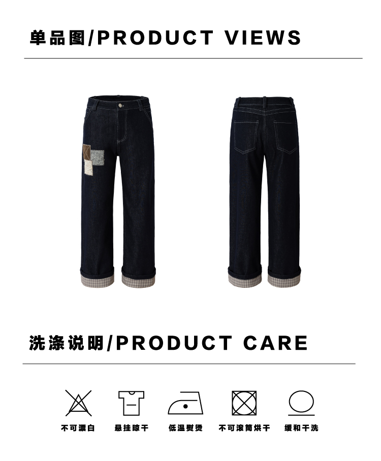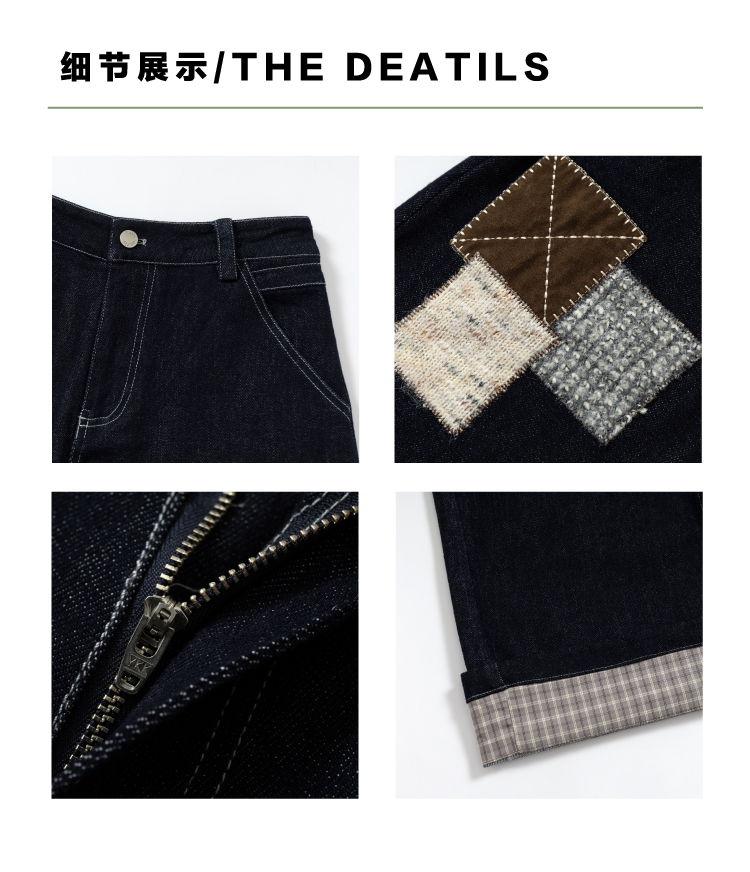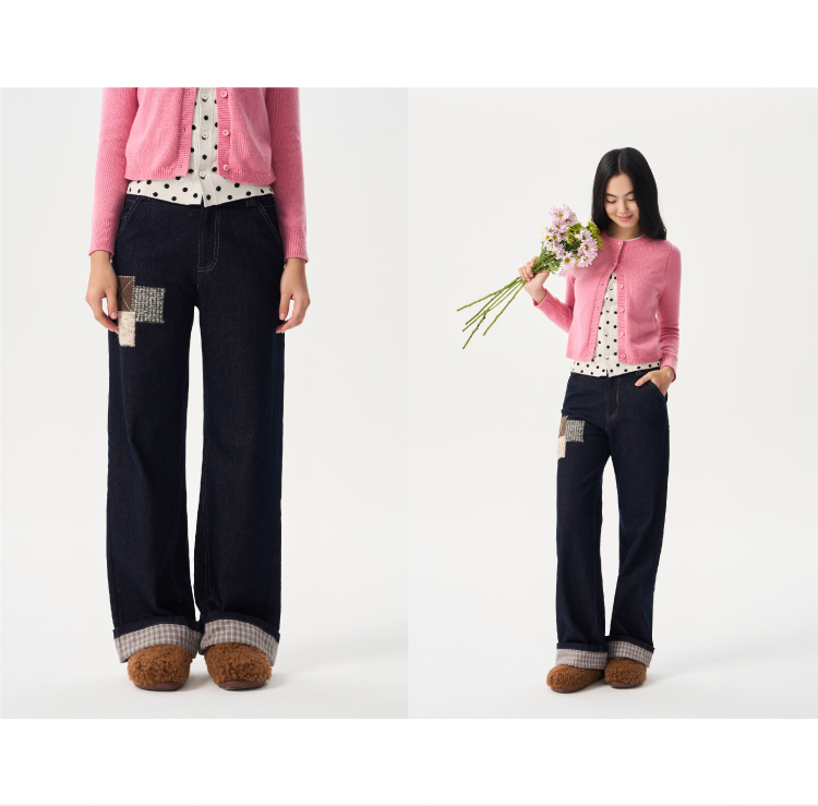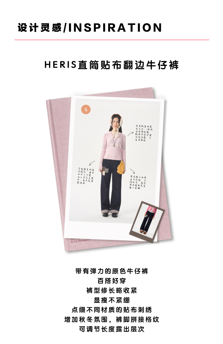 heris/H54110/毛呢贴布刺绣原色直筒好版型中腰牛仔裤